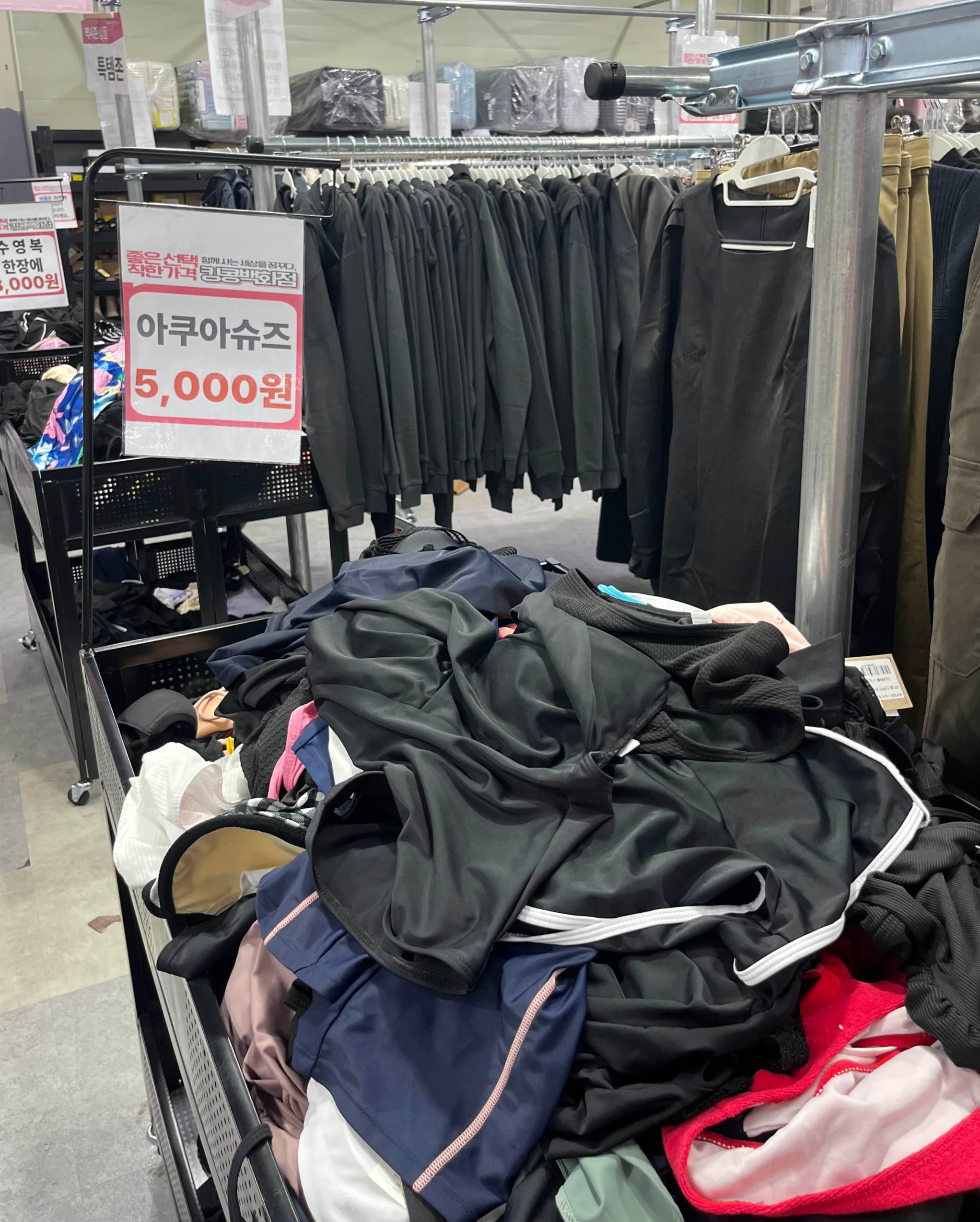 의류는 패딩, 코트부터 수영복, 바지, 티셔츠, 니트, 신발류 까지 정말 다양했는데요. 수영복은 3,000원부터 있고 아쿠아슈즈는 5,000원 짜리도 있더라구요. 가성비 무엇!