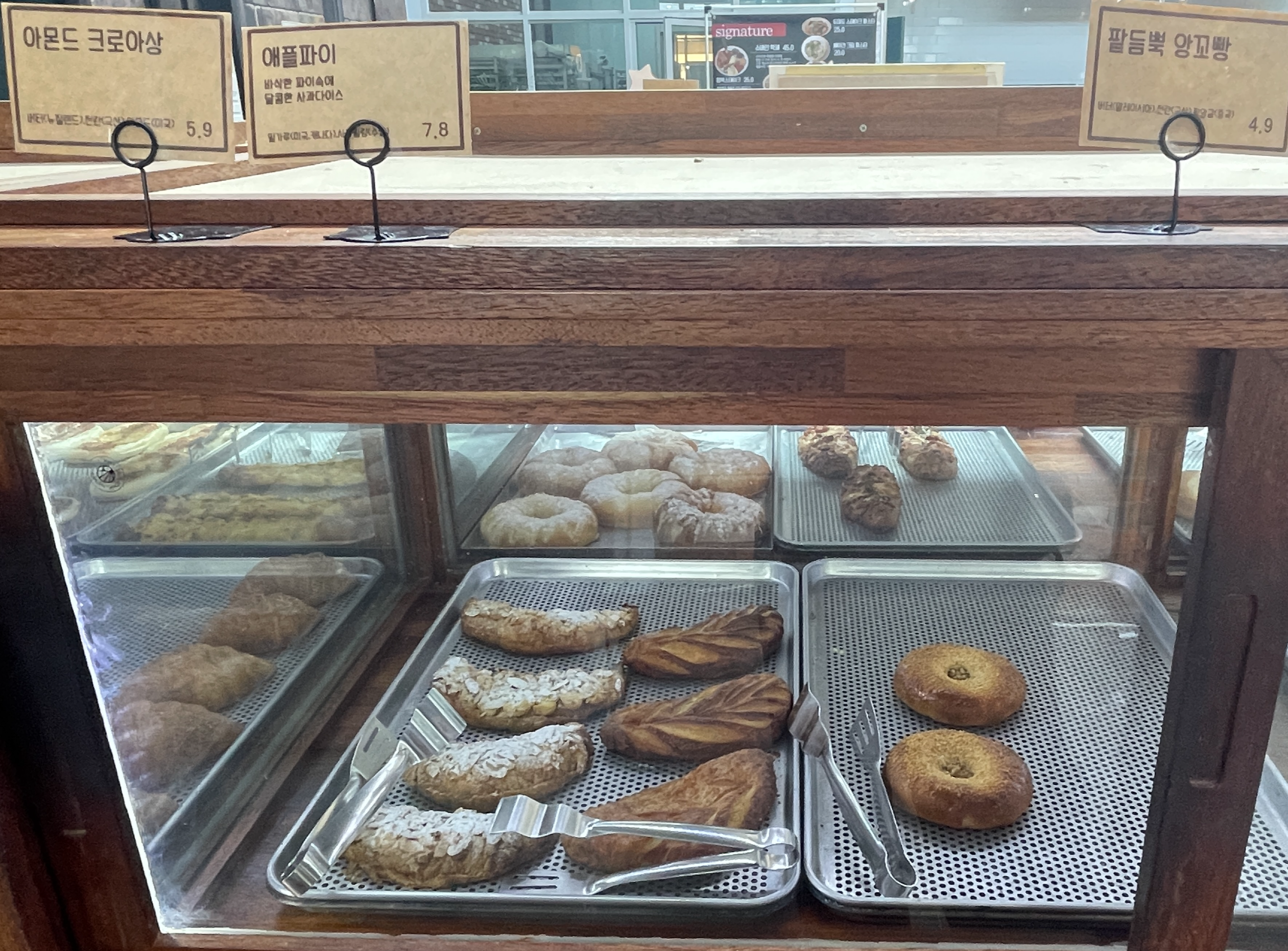 크기도 큼직하고 먹음직 스러운 것들로 야무지게 골라봤습니다. 빵 가격은 음료대비 합리적인 편이였어요.