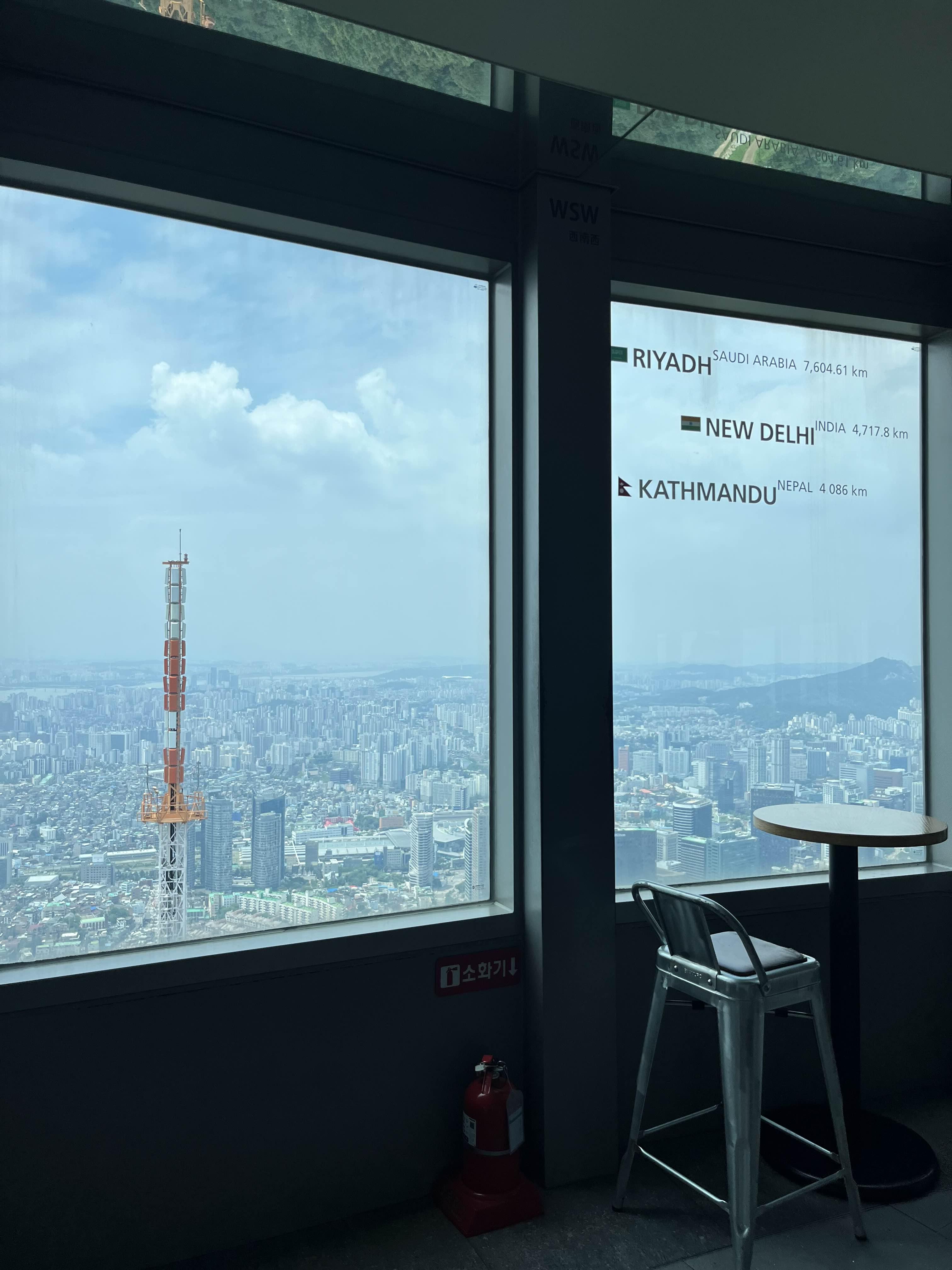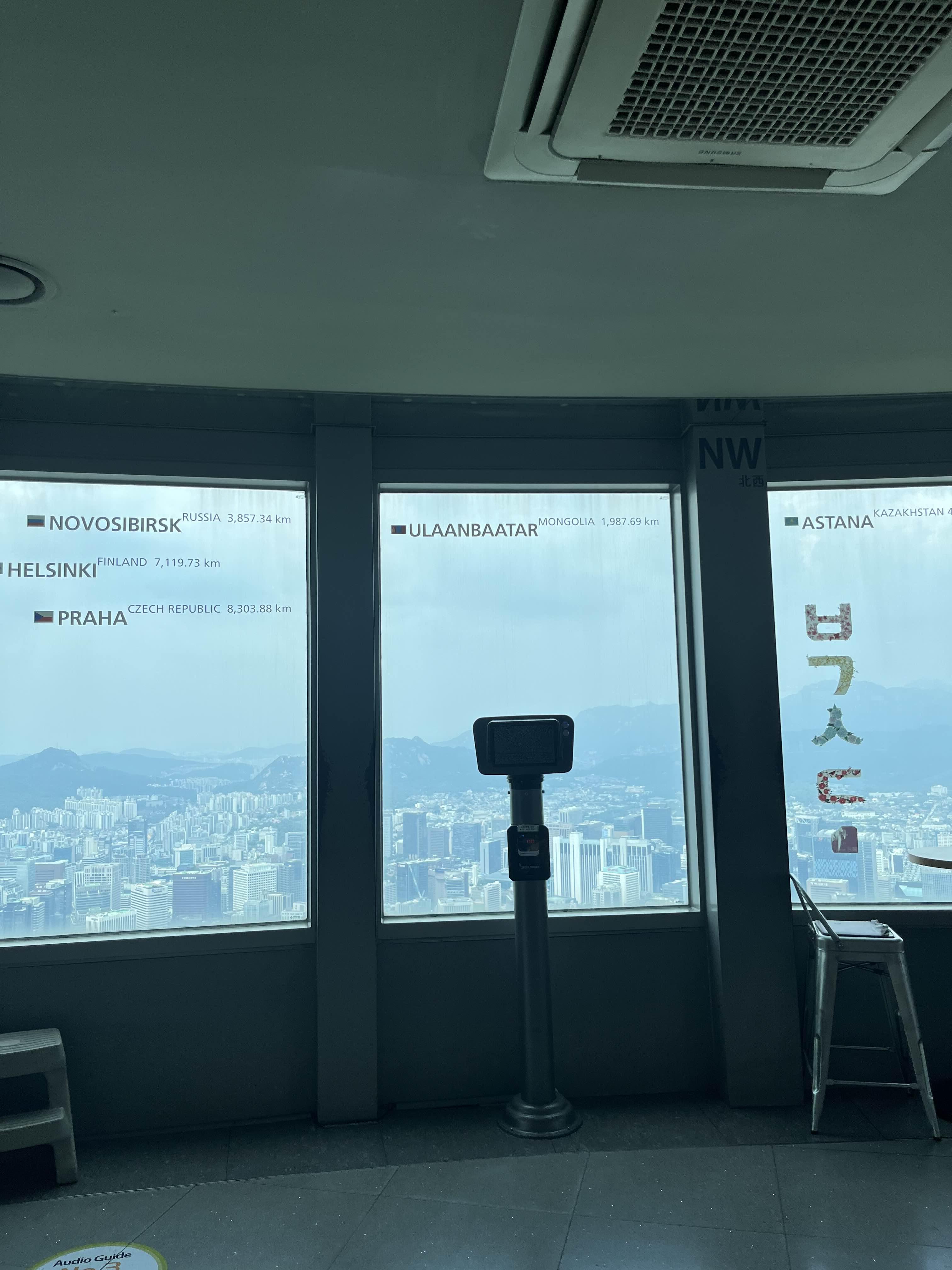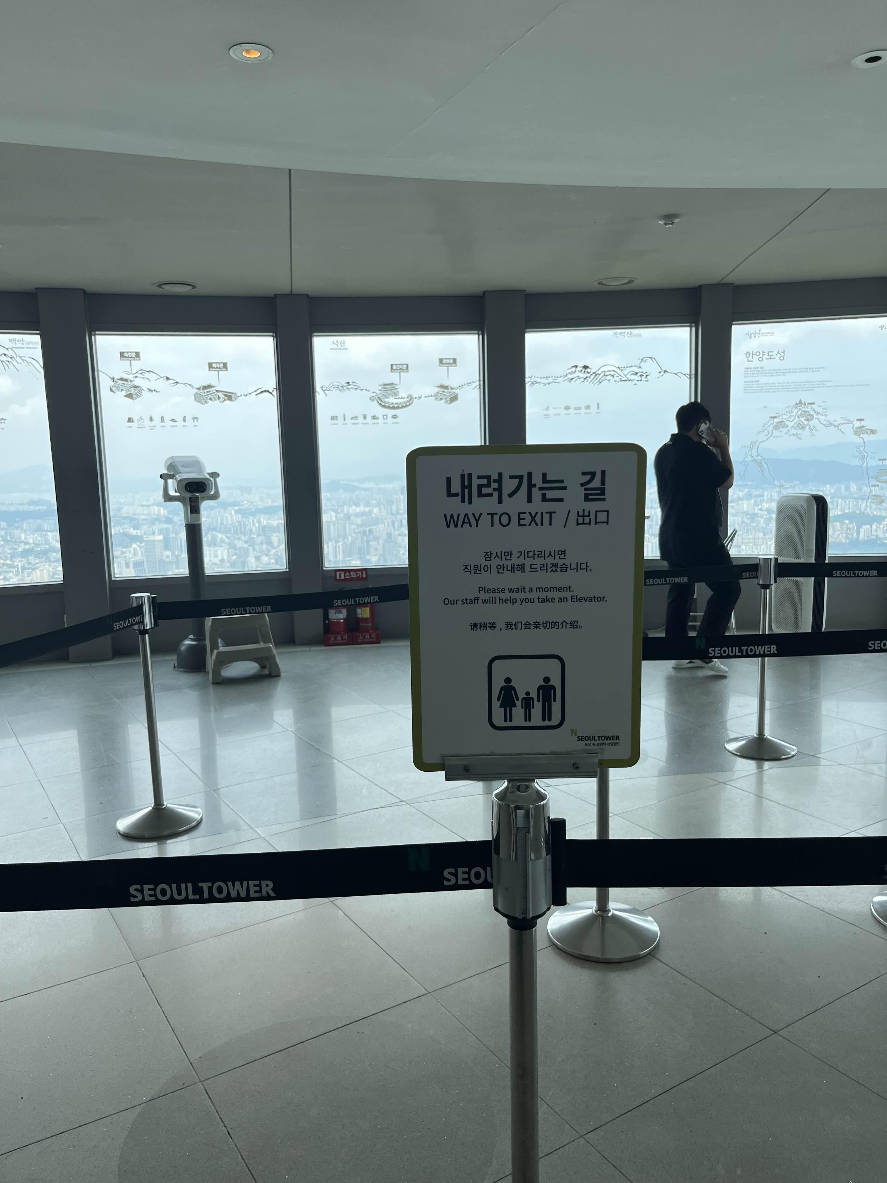 전망대는 2개층으로 나눠지는데 먼저 엘레베이터를 타고 올라오면 바로 도착하는층이 있고 하나 아랫층으로 내려가도 전망대가 있으니 두개층을 모두 이용하면 된다. 360도로 서울의 전역을 볼 수 있어서 정말 재미있기도 하고 궁들을 포함해 역사적인 지역과 건물들이 있어서 이런저런 얘기를 하며 한바퀴 돌면 생각보다 더 재미있었다.