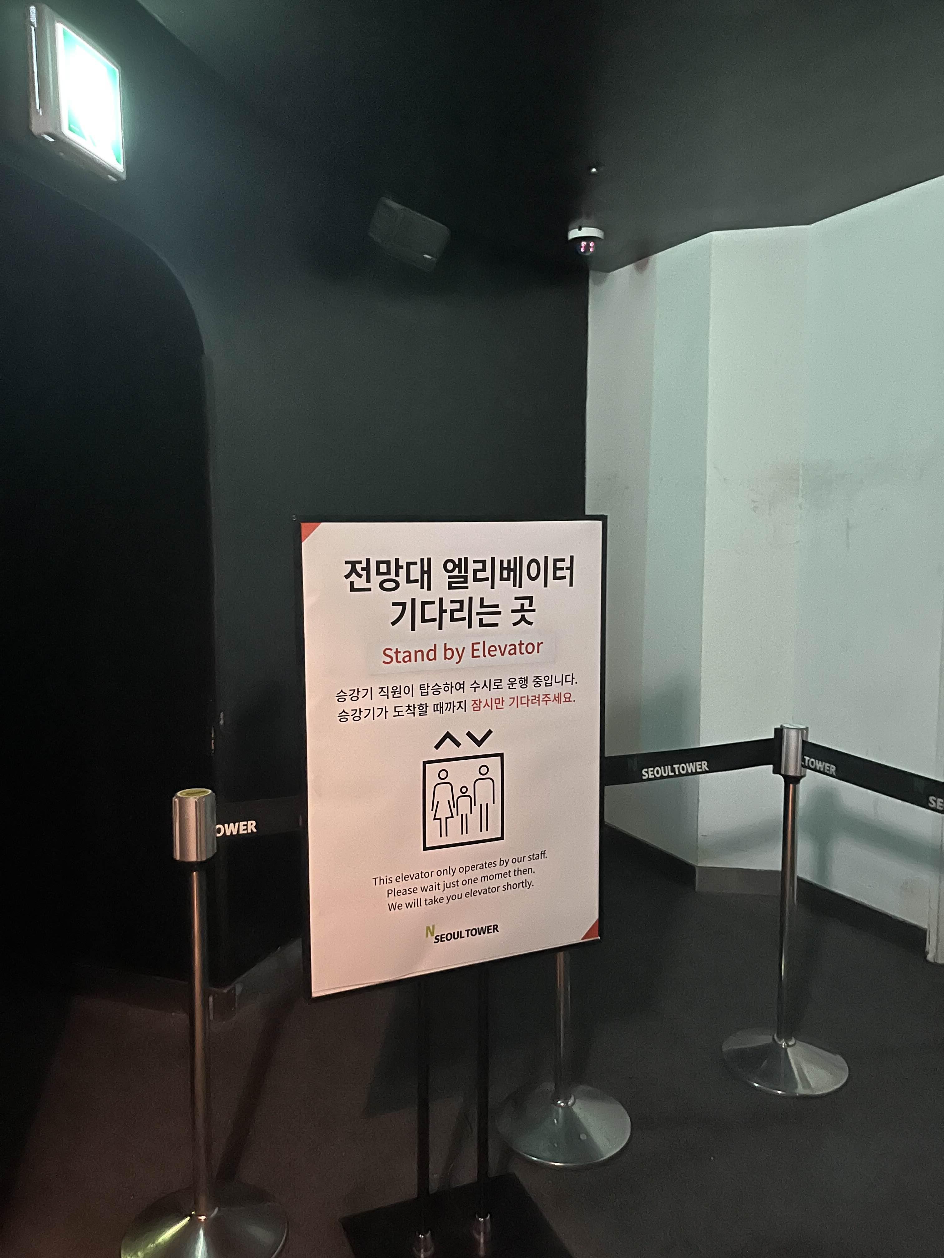 내려갈때도 동일하게 엘레베이터를 타고 내려가는데 앞에서 그냥 대기하고 있으면 직원분이 엘레베이터를 타고올라와서 맞이해 주신다. 내려갈때에도 동일하게 천장 스크린에 영상을 틀어주시고 약 30초가 안돼는 짧은 시간안에 내려왔다.