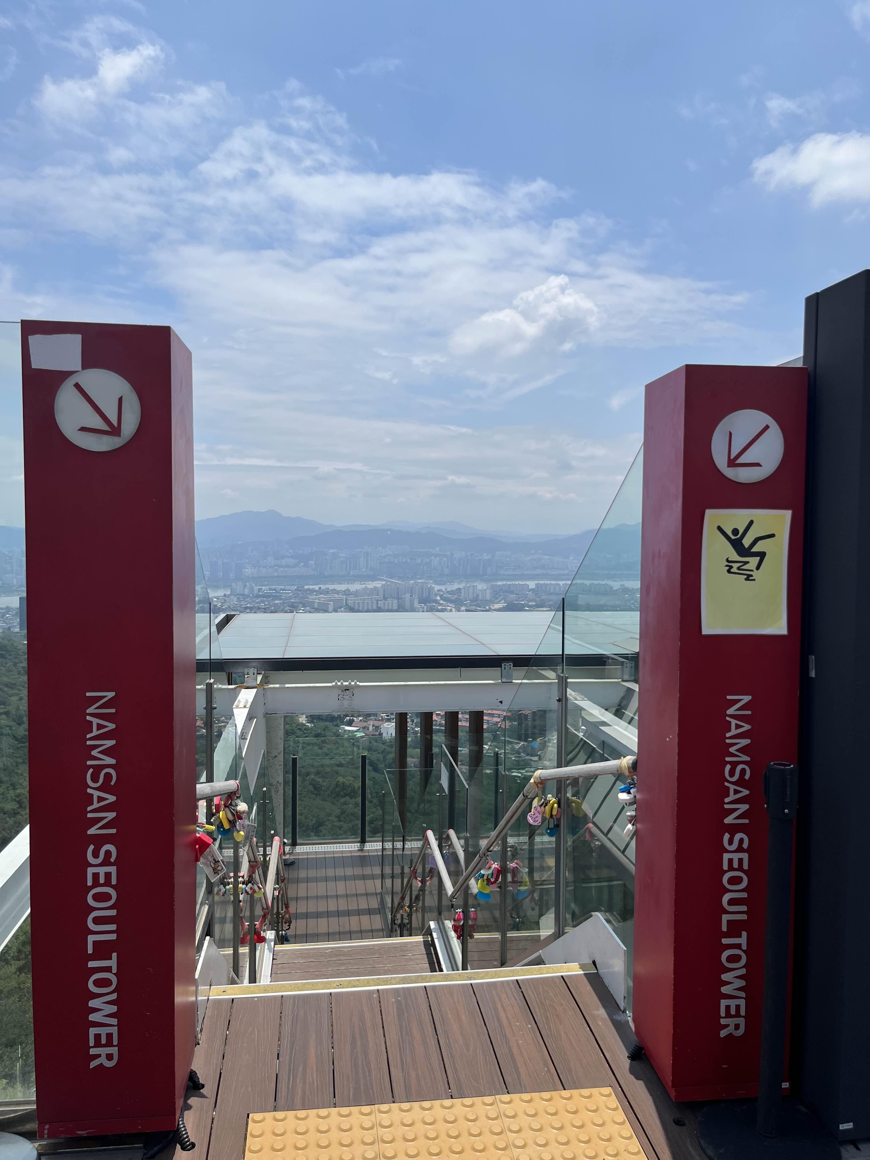 버스에서 내리자마자 볼 수 있는 뷰! 미세먼지는 조금 있었지만 서울시내가 한눈에 보이는 너무 아름다운 뷰였다. 꼭 남산타워 전망대에 올라가지 않더라도 그냥 주변 산책하면서 이곳저곳을 봐도 괜찮을듯하다. 하지만 우리는 정말 오랜만에 오기도 했고 나름 추억을 쌓고자 전망대도 방문하기로 했다.