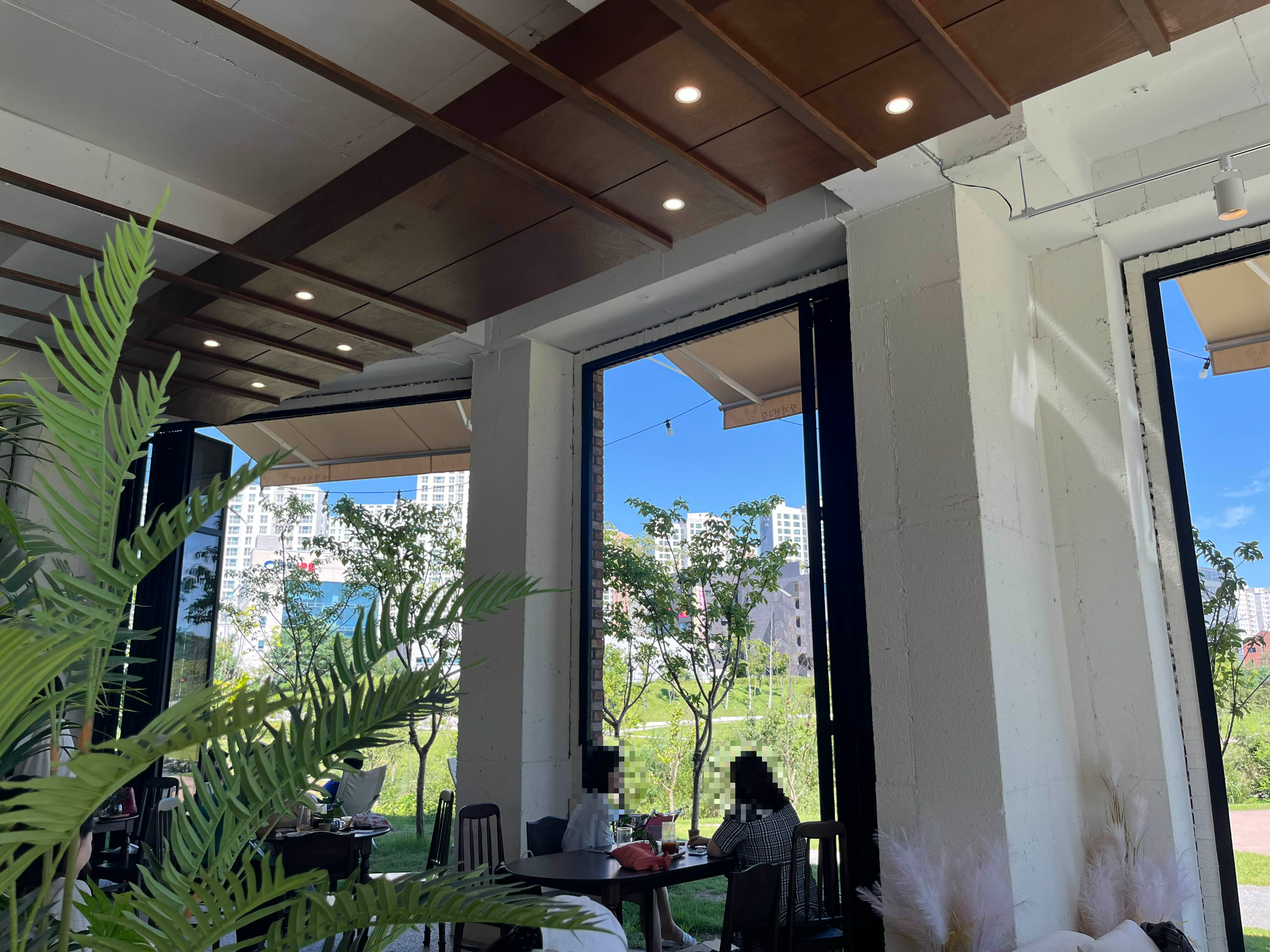 파란 하늘과 초록 공원의 조화가 보기만해도 스트레스를 날릴 수 있던 곳! 엄청 큰 대형카페는 아니지만 한쪽을 다 개방해 놓으니 답답함이 전혀 없이 오히려 근교에 캠핑을 온듯 속이 다 시원해지는 느낌이었다.
