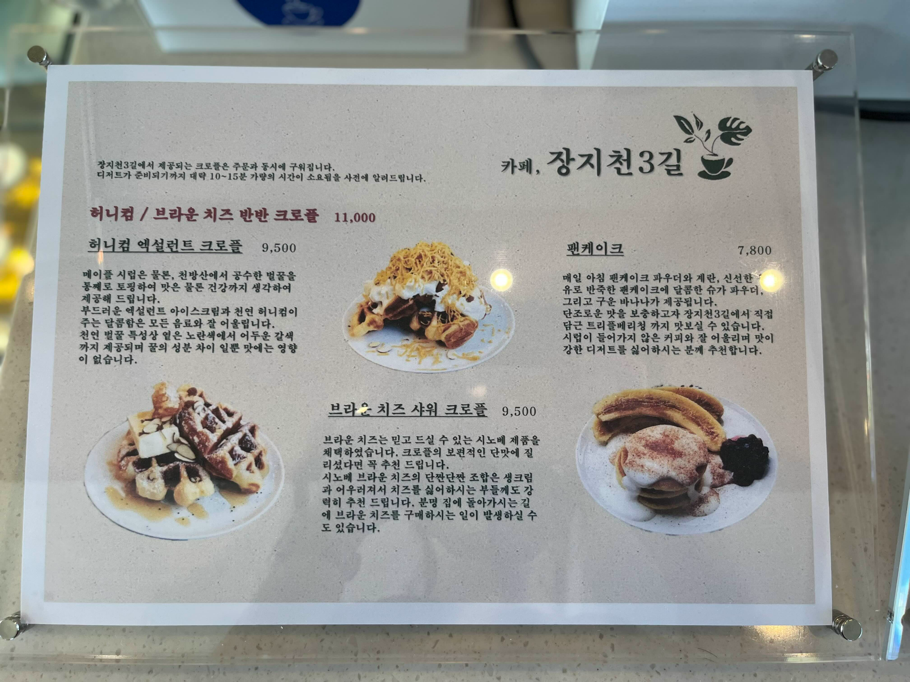 그리고 장지천3길에 오면 꼭 먹어줘야하는 크로플..! 지난번에 왔을때 먹고 넘넘 맛있어서 이번에도 주문을 했다. 이전에도 허니컴 엑설런트를 먹었는데 이번에도 고걸로 선택! 브라운치즈는 개인적으로 좋아하질 않아서 고민하다가 이번에도 그냥 같은 메뉴로 선택했다.
