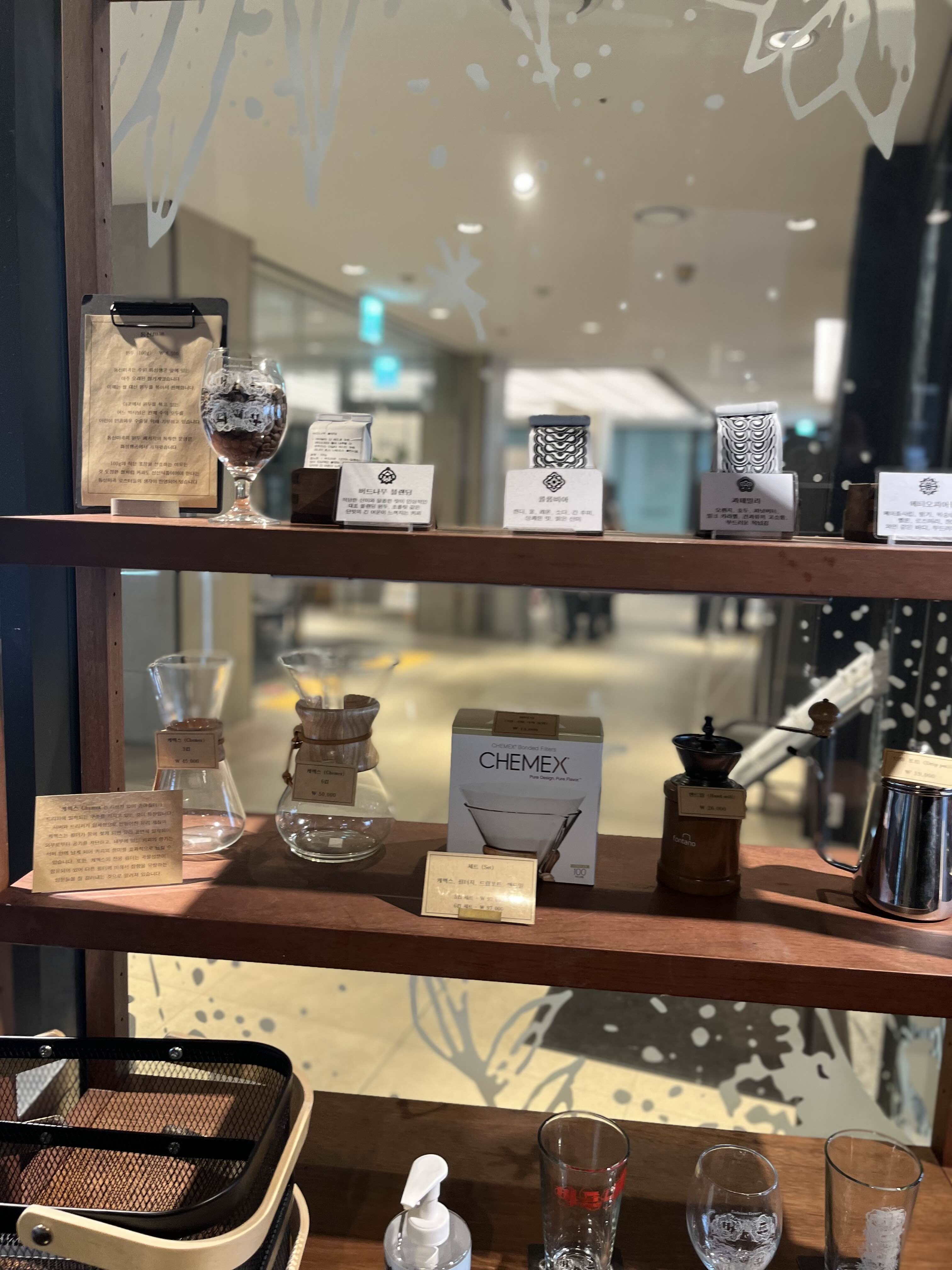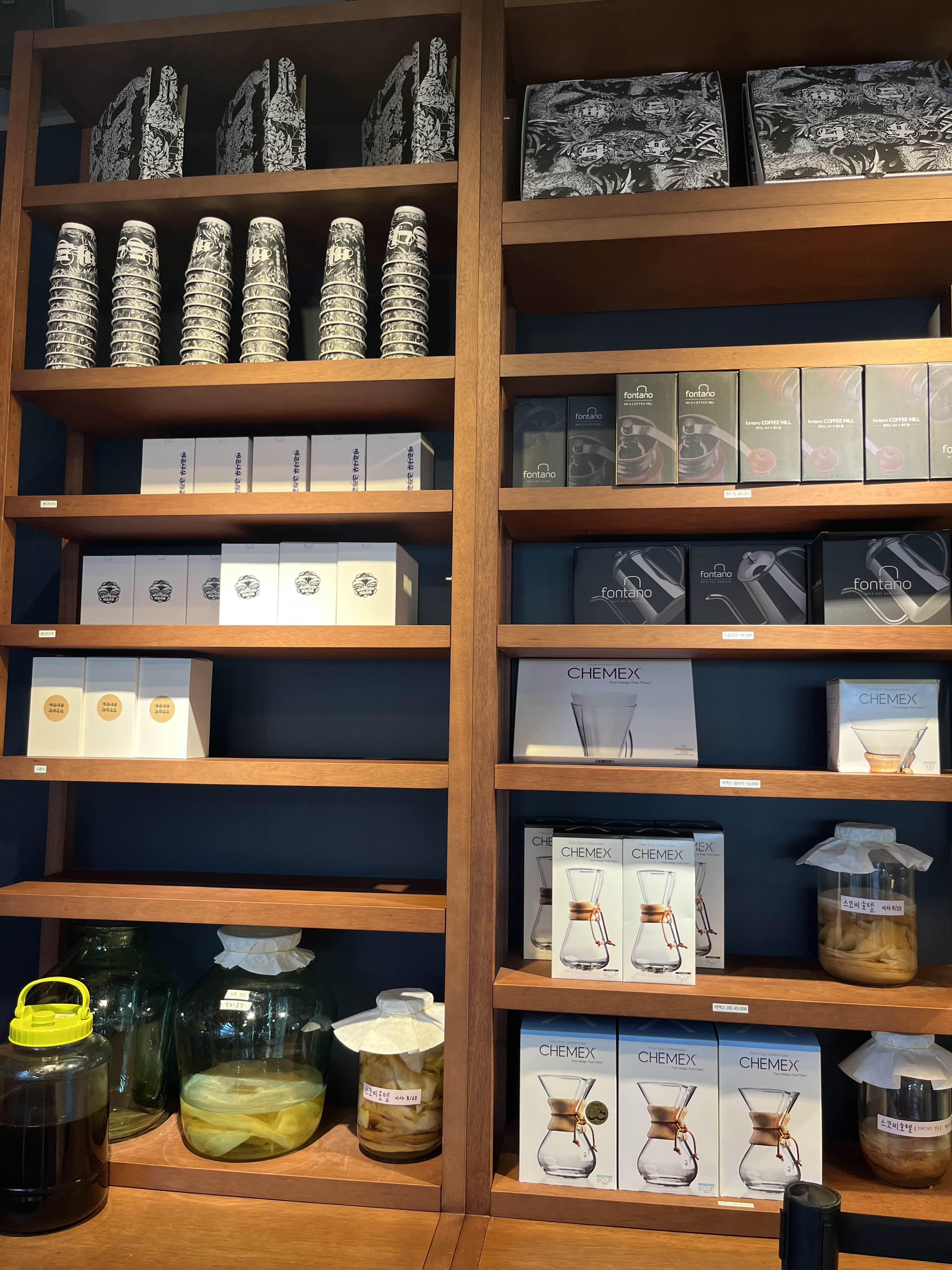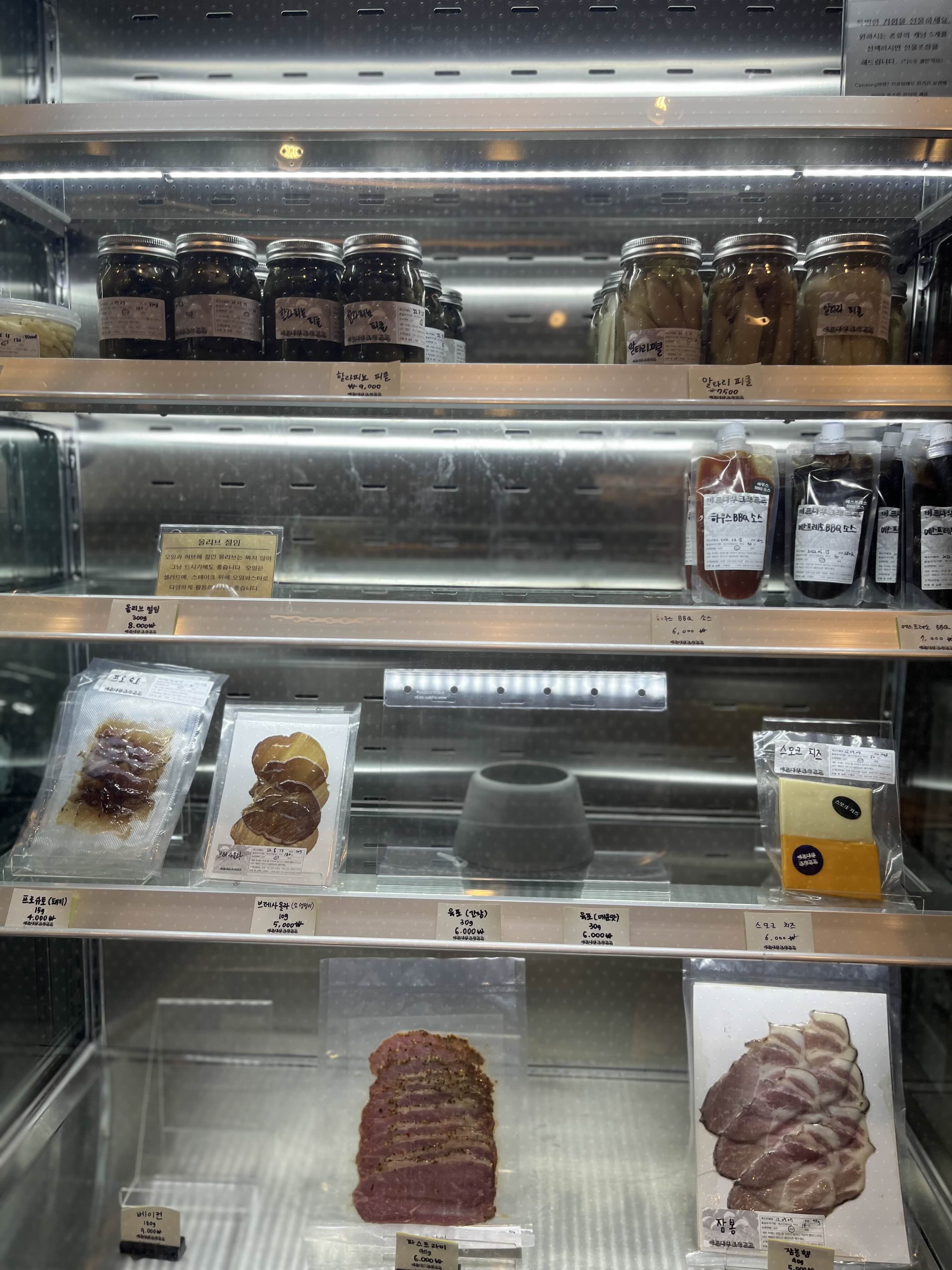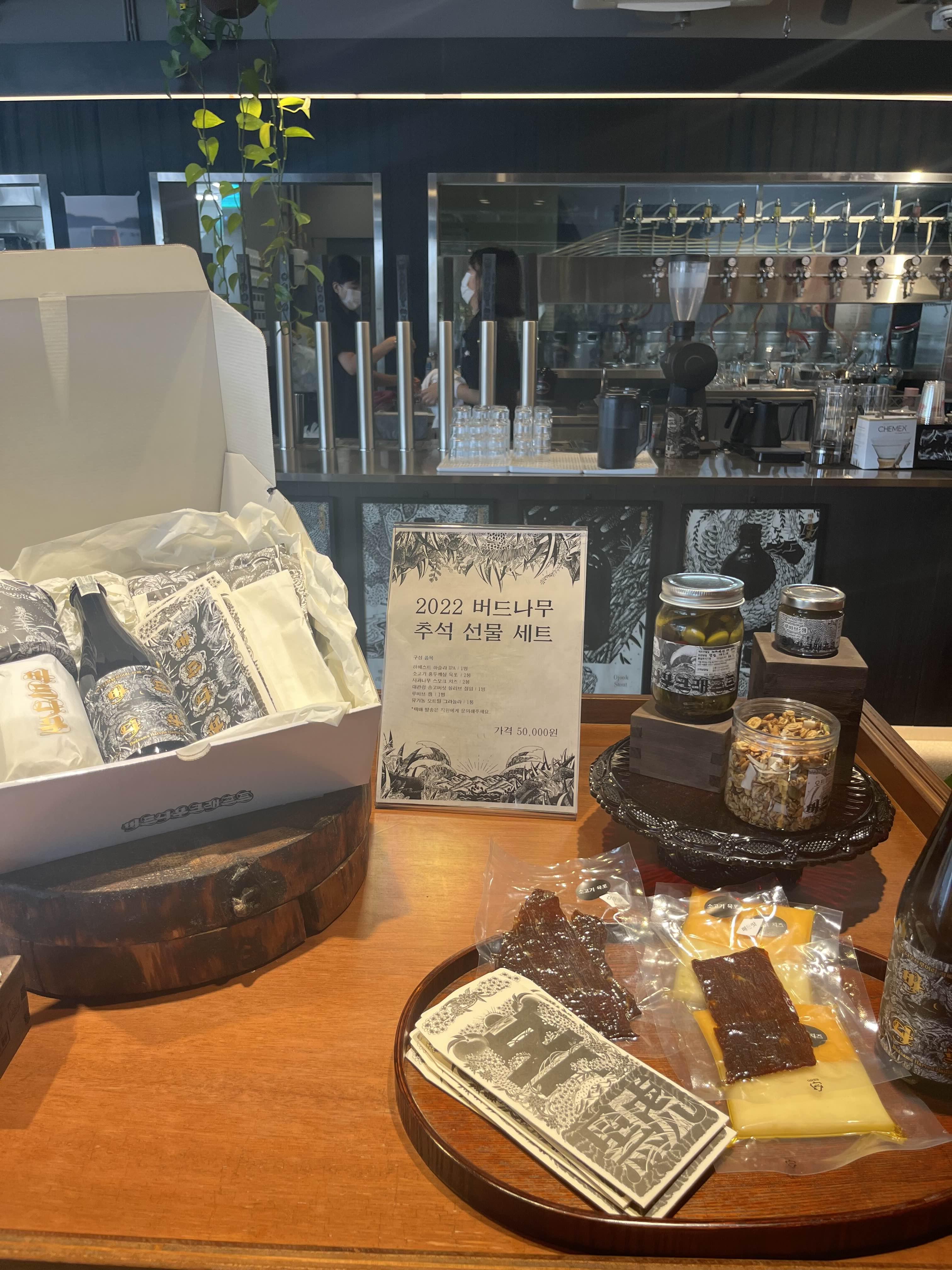 입구 오른쪽으로는 버드나무 크래프트의 원두, 크림치즈들, 안주류, 절임류 등 다양한 굿즈와 식재료들도 판매중이다.