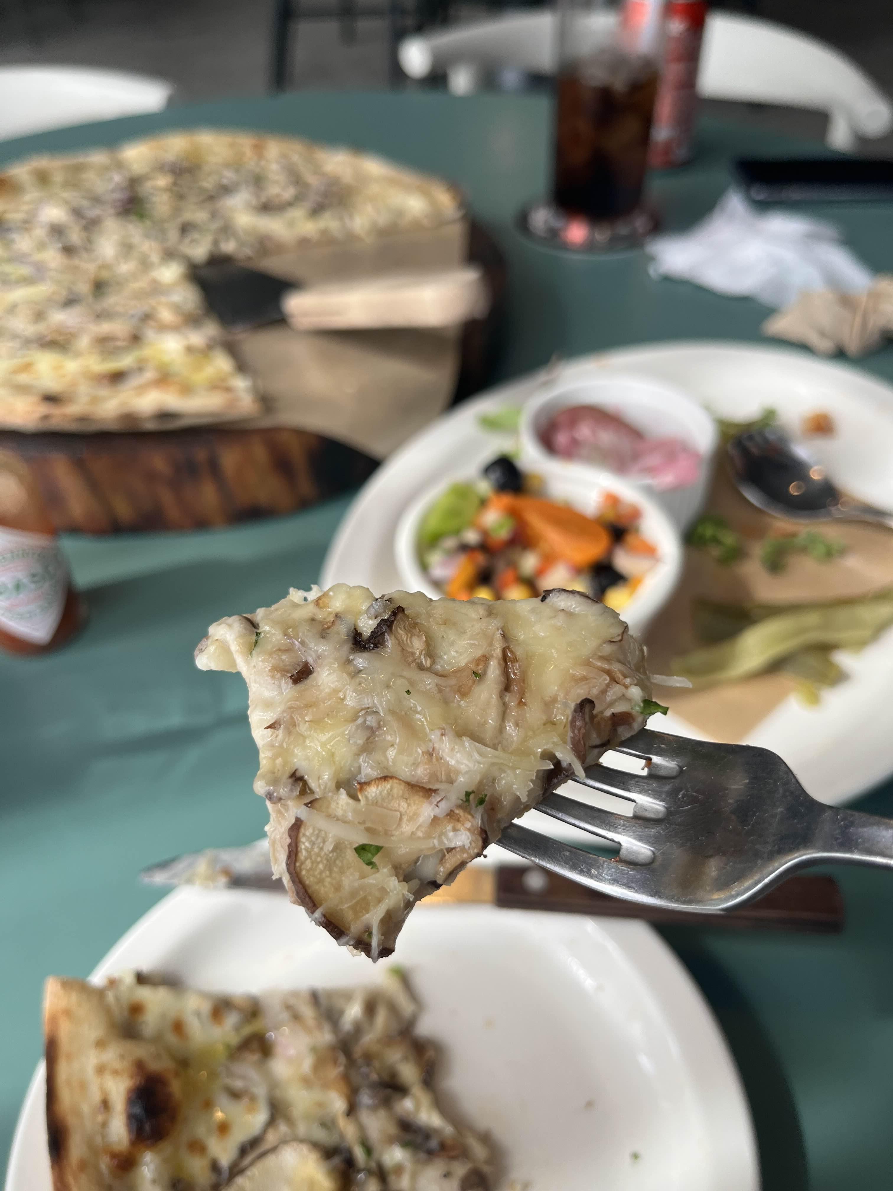 내가 이곳에 또 방문하게 만든 주인공인 바로 대관령 버섯피자..! 서빙해 주실때부터 엄청난 트러플 향과 버섯의 풍비가 오지는 피자다. 화덕에 구운 얇은 피자인데 그위에 치즈와 버섯 양파등만 간단하게 토핑되어 있다. 그런데 한입 먹게되면 그풍비와 부드러움..짭잘합이 어울려서 맛도리 그잡채!