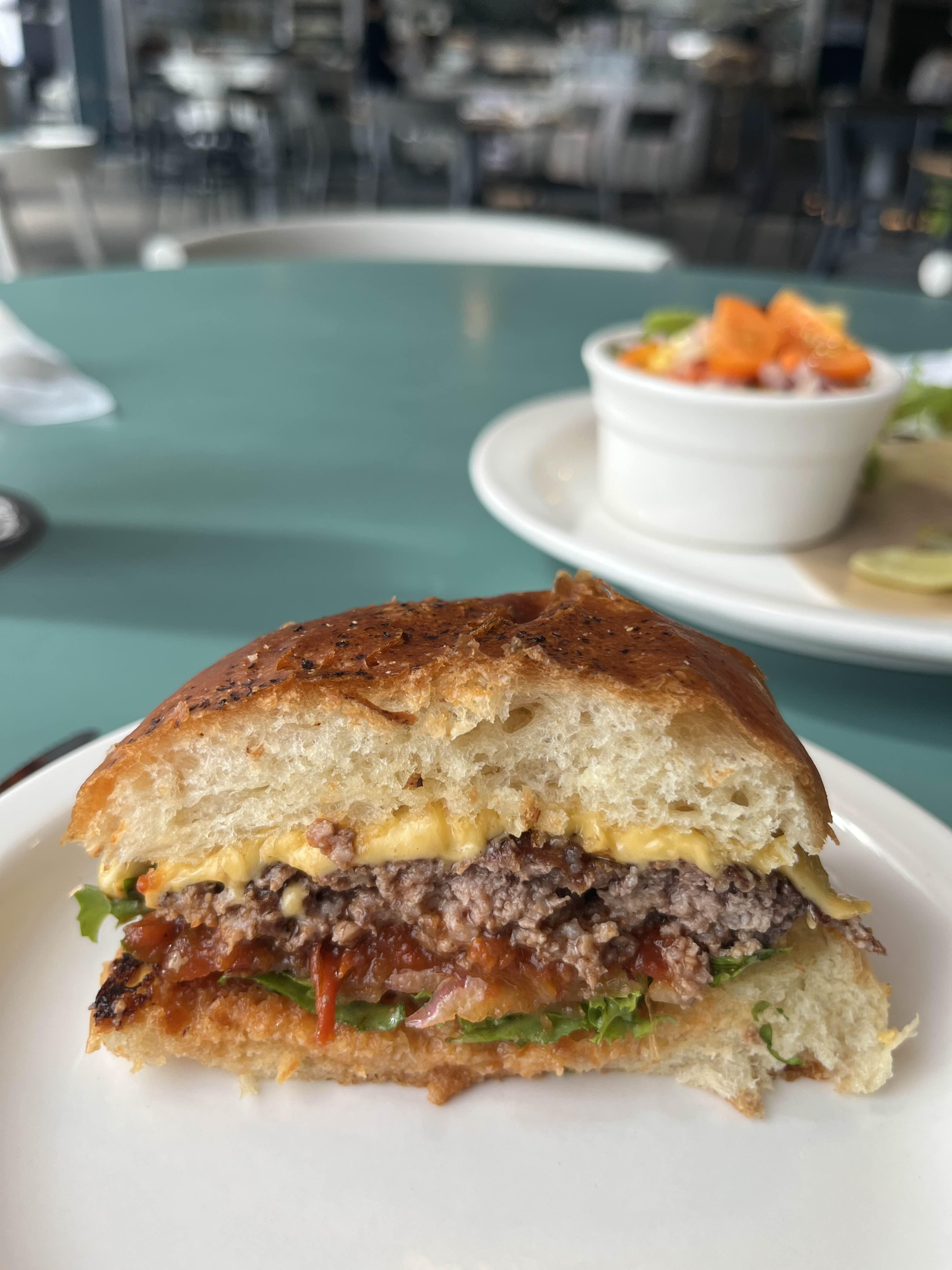 감자튀김은 먹고싶지 않아서 콥샐러드가 포함된 치즈버거 세트를 주문했다. 궁채피클..?인지 샐러리 피클이 함께 나오는데 정말로 요물! 느끼함 싹 잡아주면서도 아삭아삭해서 너무 맛있었고 콥샐러드도 정말 신선함 그 자체여서 다소 느끼할 수 있는 치즈버거를 아주 깔끔하게 잡아주었다.