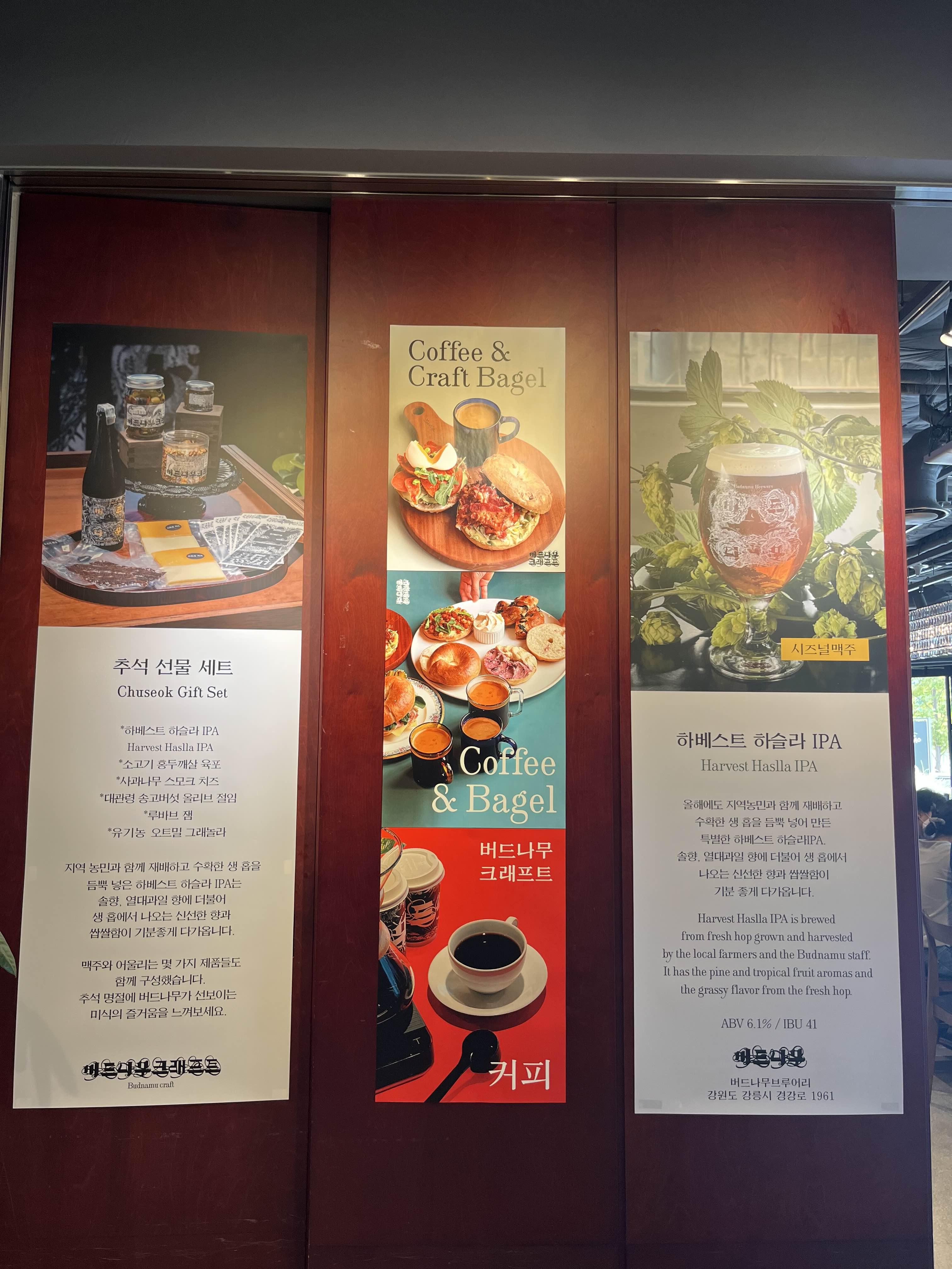 추천하는 맥주와 선물세트 등 포스터가 붙어있던 곳! 베이글은 한 번도 안먹어 봤는데 베이글이랑 커피 마시러도 와야겠다.
