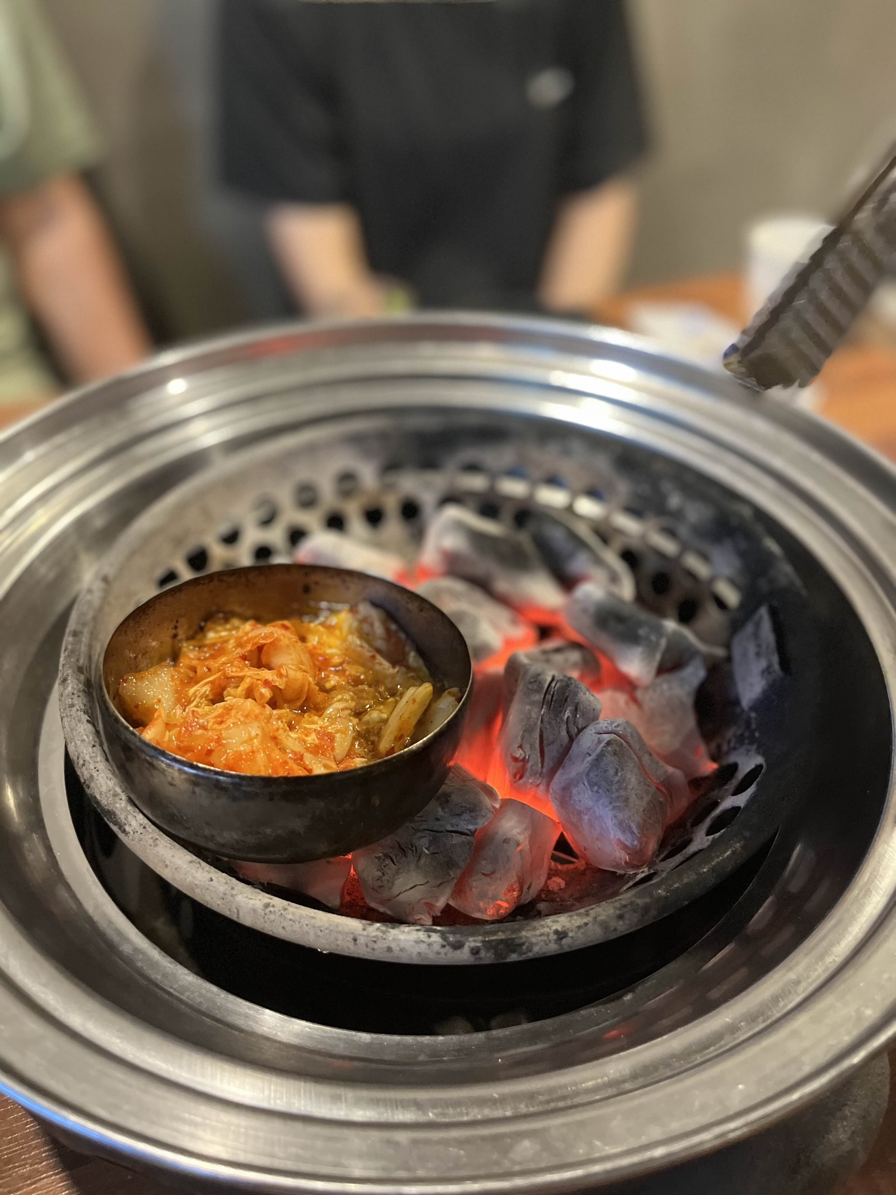 숯불이 올라오면 구워서 먹는 김치 느낌으로다가 볶음 김치도 한켠에 놓아주신다. 고기에 싸먹거나 반찬으로 먹기 너무 맛있음! 숯불고기임에도 요렇게 김치를 구워먹을 수 있다니 아주 신박했음.