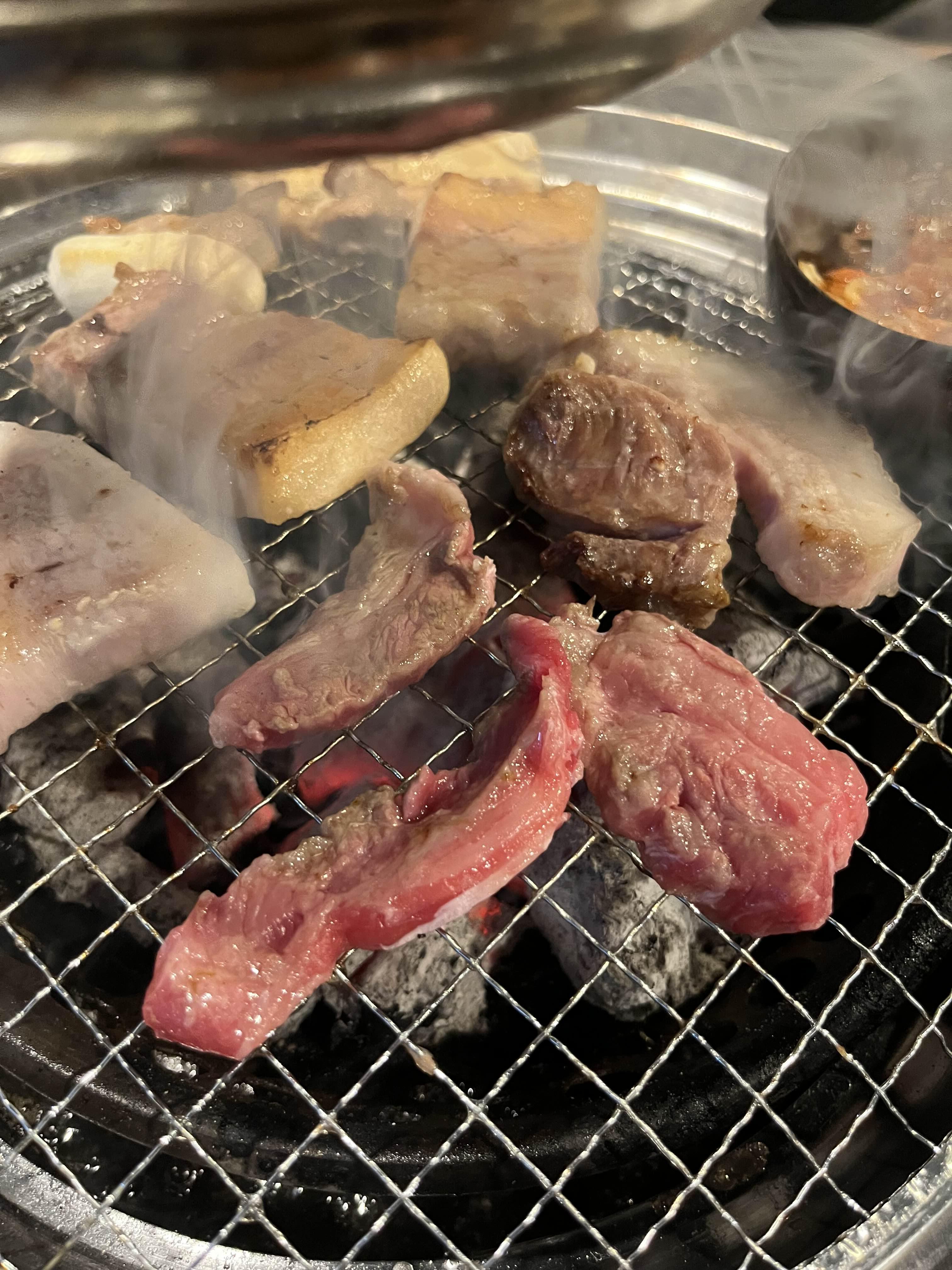 소고기와 돼지고기를 모두 팔고있는 화로구이 맛집! 평일 5시30분쯤 갔는데 이미 손님이 꽤 있었다. 저녁 6시 이후로는 평일 주말 가릴것 없이 거의 만석이니까 좀 일찍 방문하는편이 좋다.