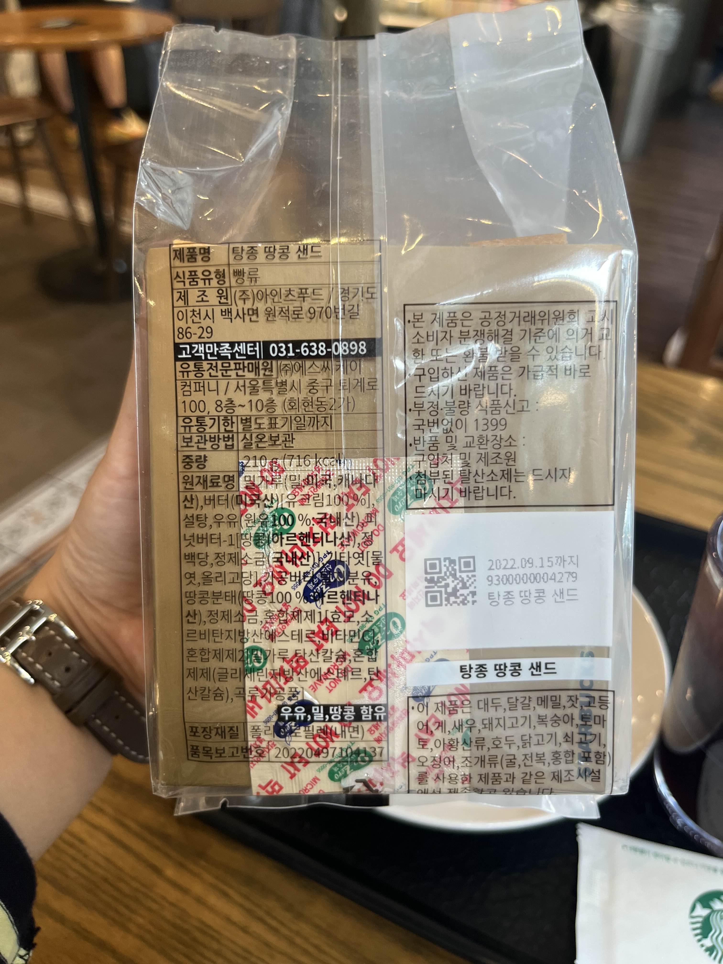 아주 최근은 아니지만 8월 25일 출시되었던 탕종땅콩샌드! 회사 점심시간에 병원갈 일이 있어서 다녀왔다가 간단하게 점심을 떼우려고 스타벅스에 방문했는데 이 메뉴가 눈에 들어와서 주문해 보았다. 탕종법으로 만든 촉촉한 탕종 식빵에 땅콩버터 크림이 들어가 있는 어찌보면 흔한 메뉴! 예상이 가는 맛이여서 고민하긴 했는데 그래도 궁금한 마음에 먹어보기로 결정했다.