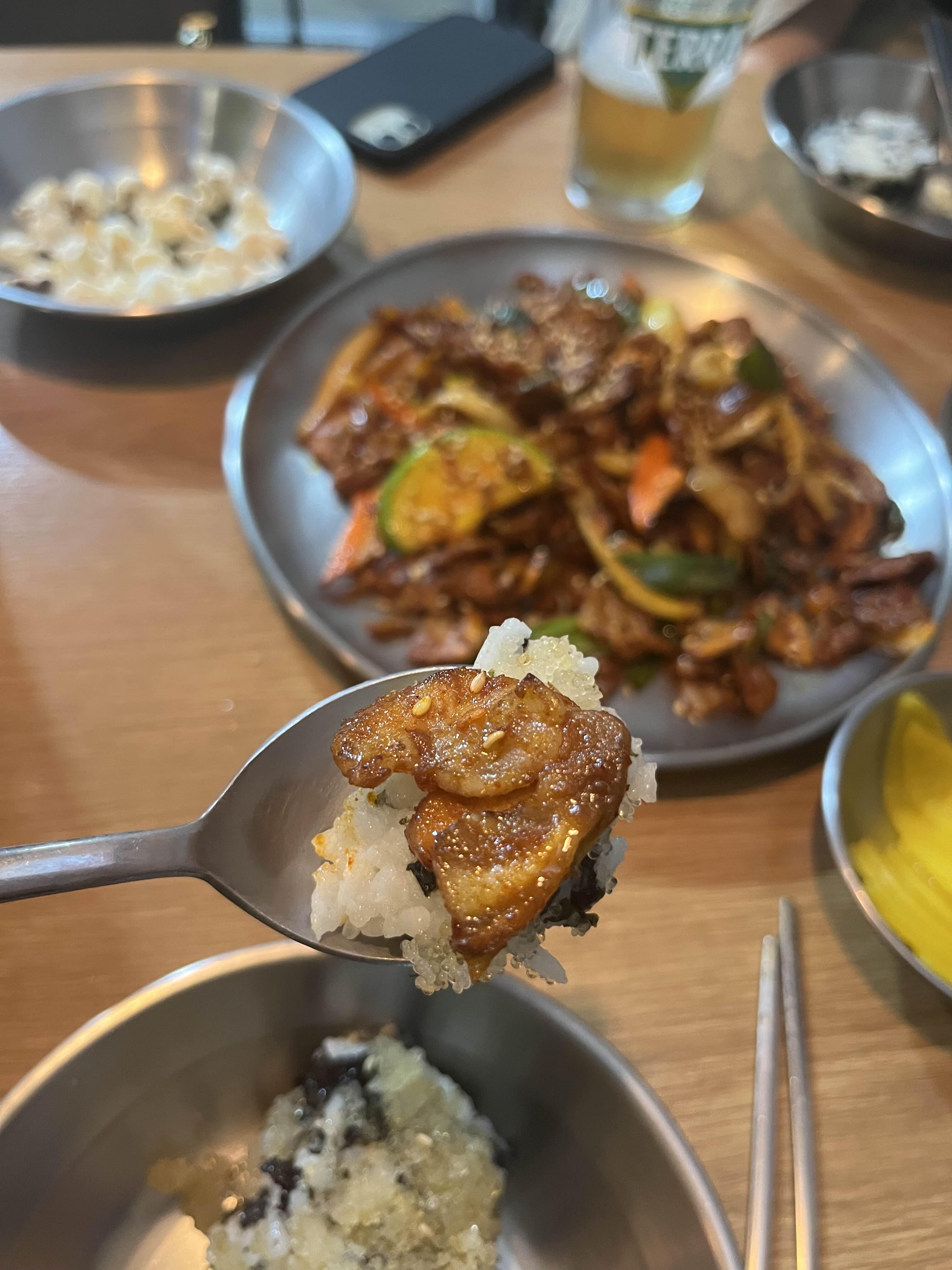 주먹밥에 오돌뼈 올려서 열심히 오독오독 먹어주기..! 퇴근하고 바로 방문한거라서 살짝 배가 고팠는데 탄수화물이 같이 들어가주니 끼니도 해결되니 좋았음.