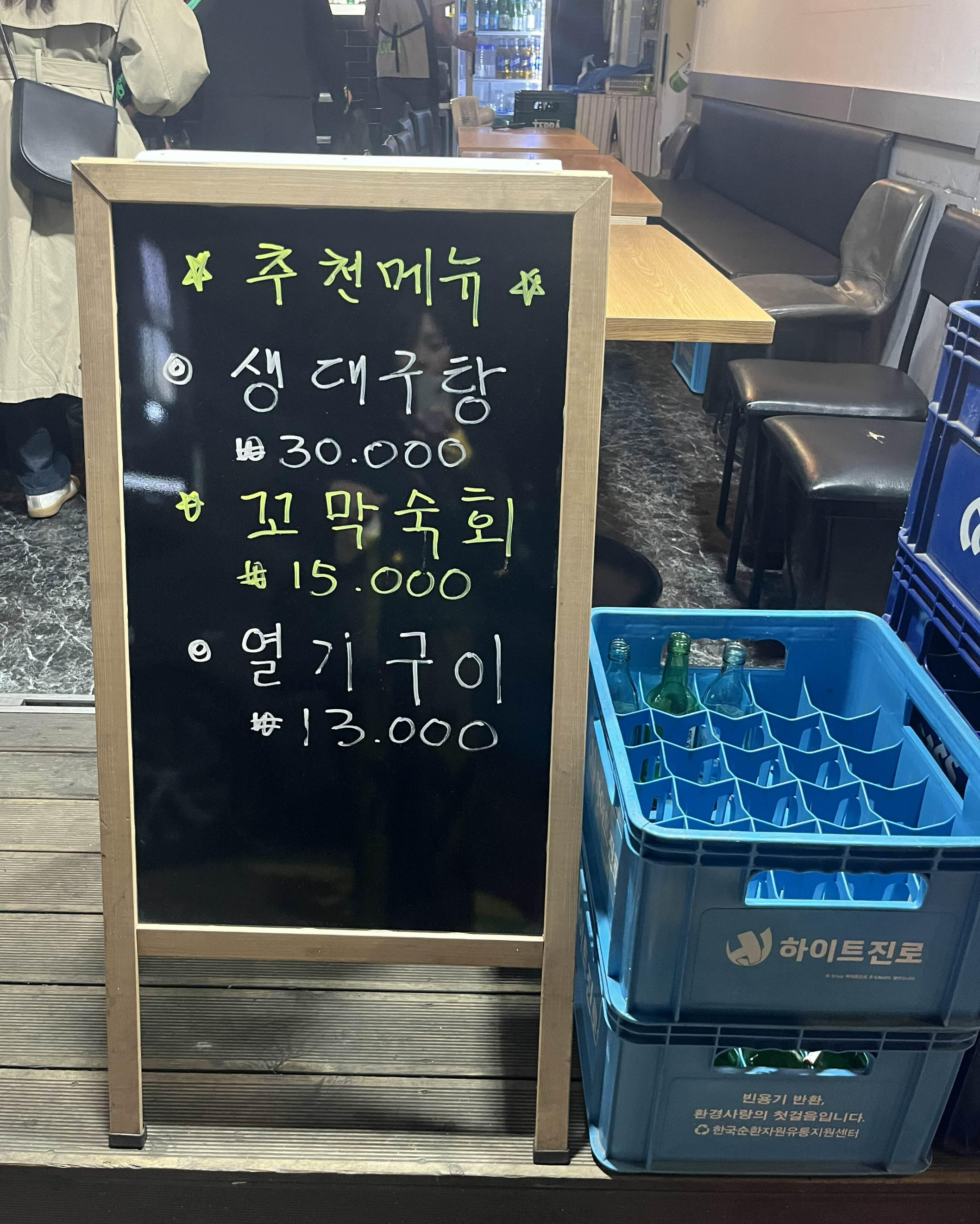 입간판에는 오늘의 추천메뉴들도 있으니 참고!