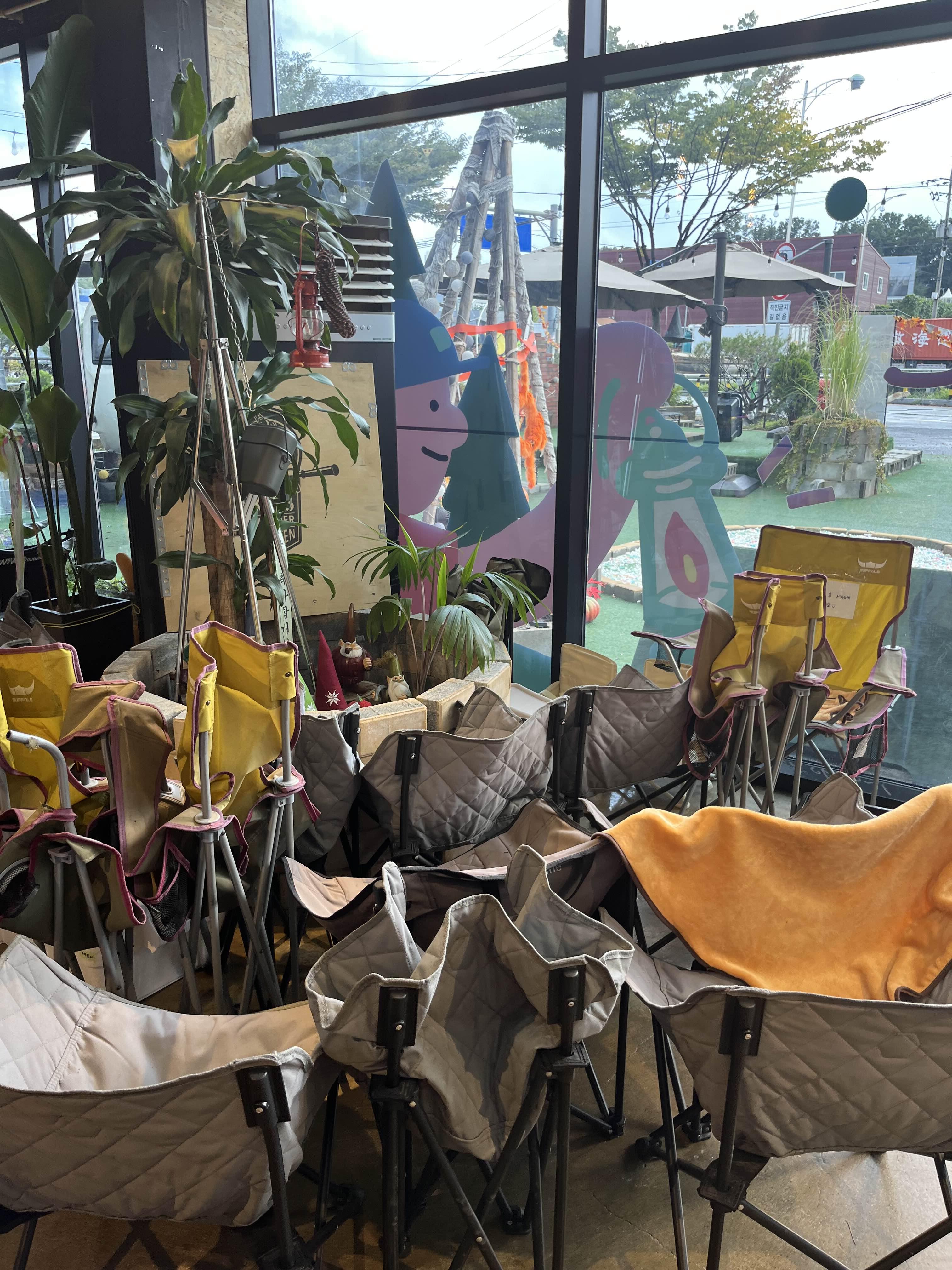 입구 한켠에 있던 캠핑 의자들은