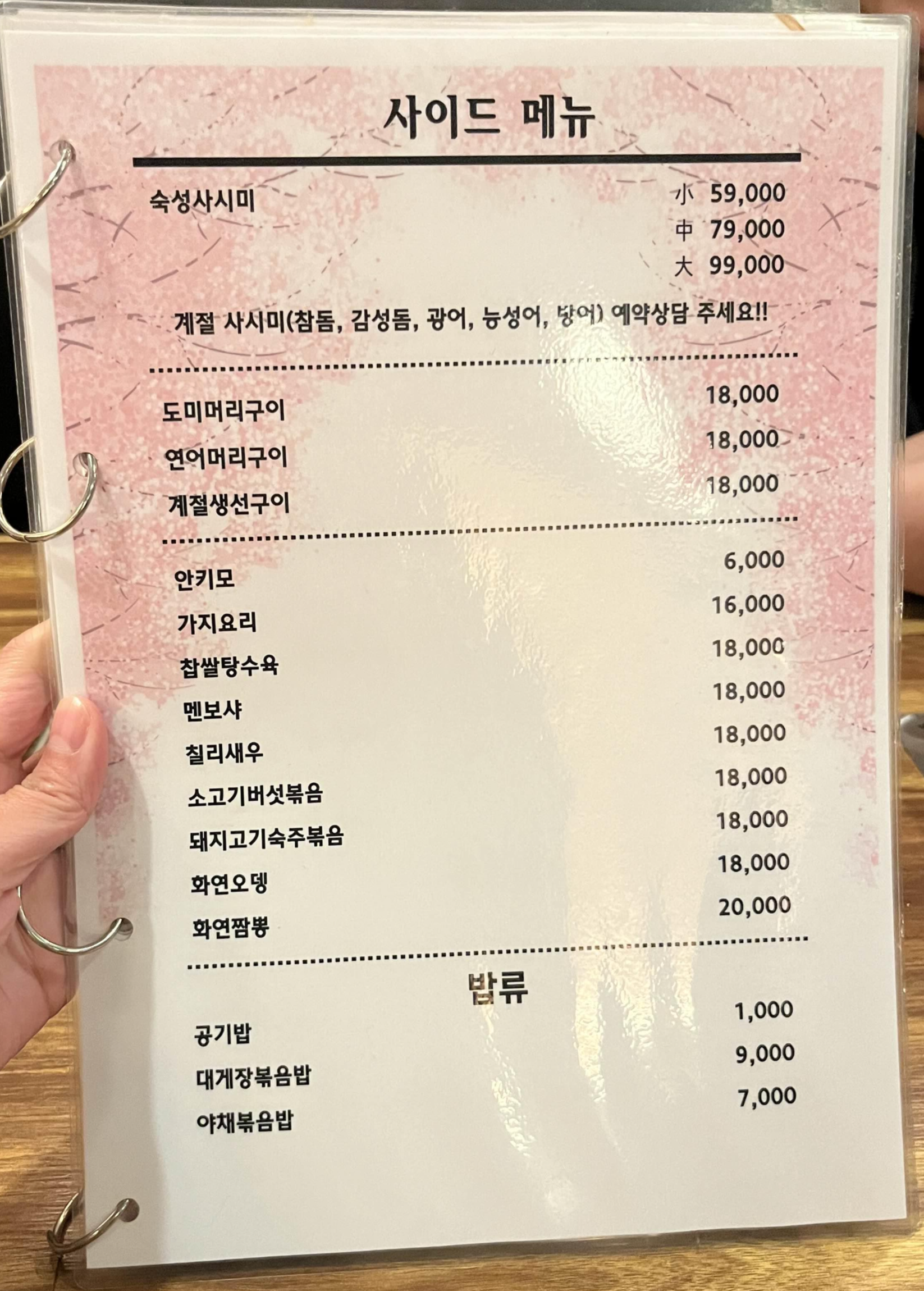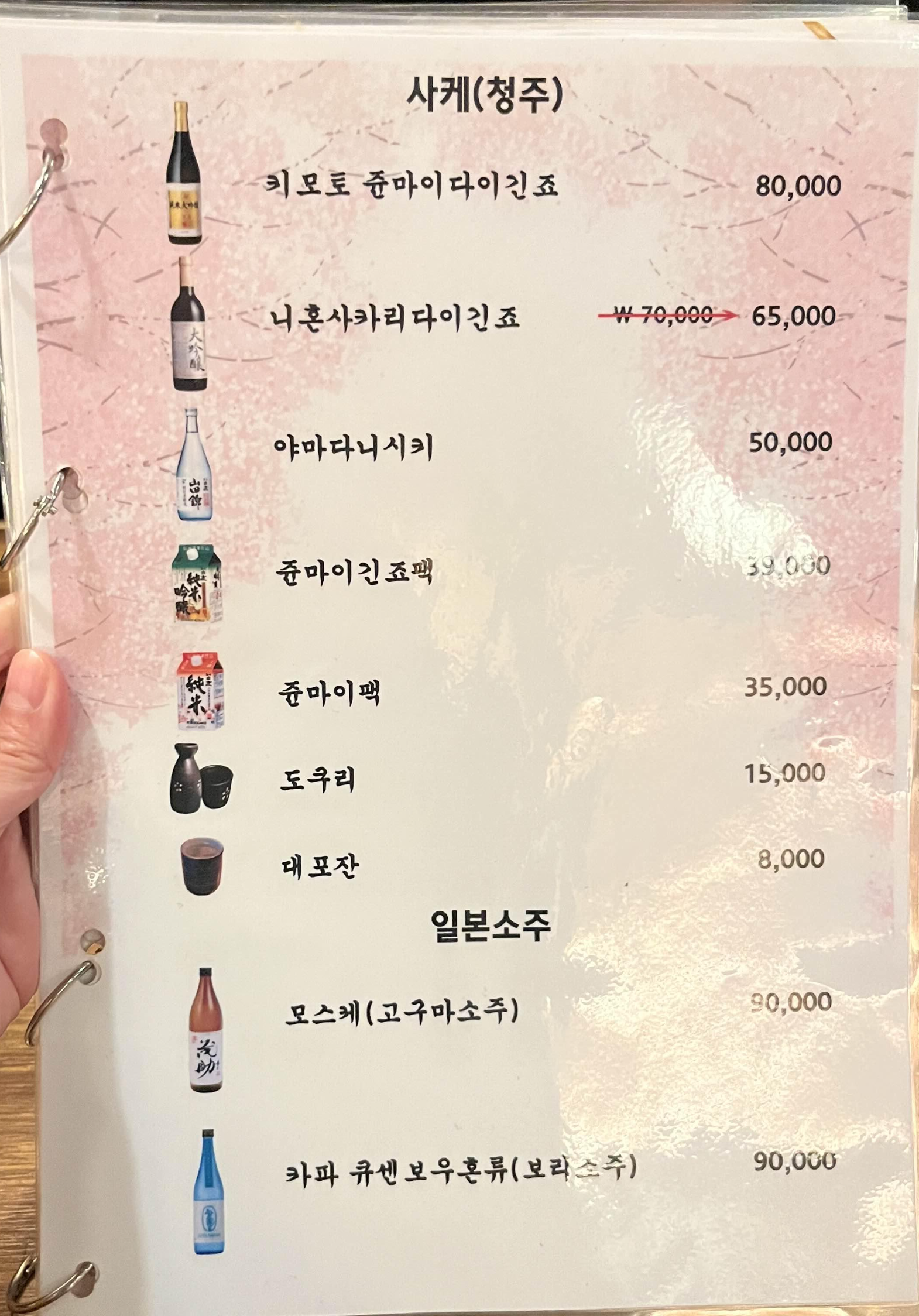 주류는 기본 소주, 맥주 외에 사케 7가지와