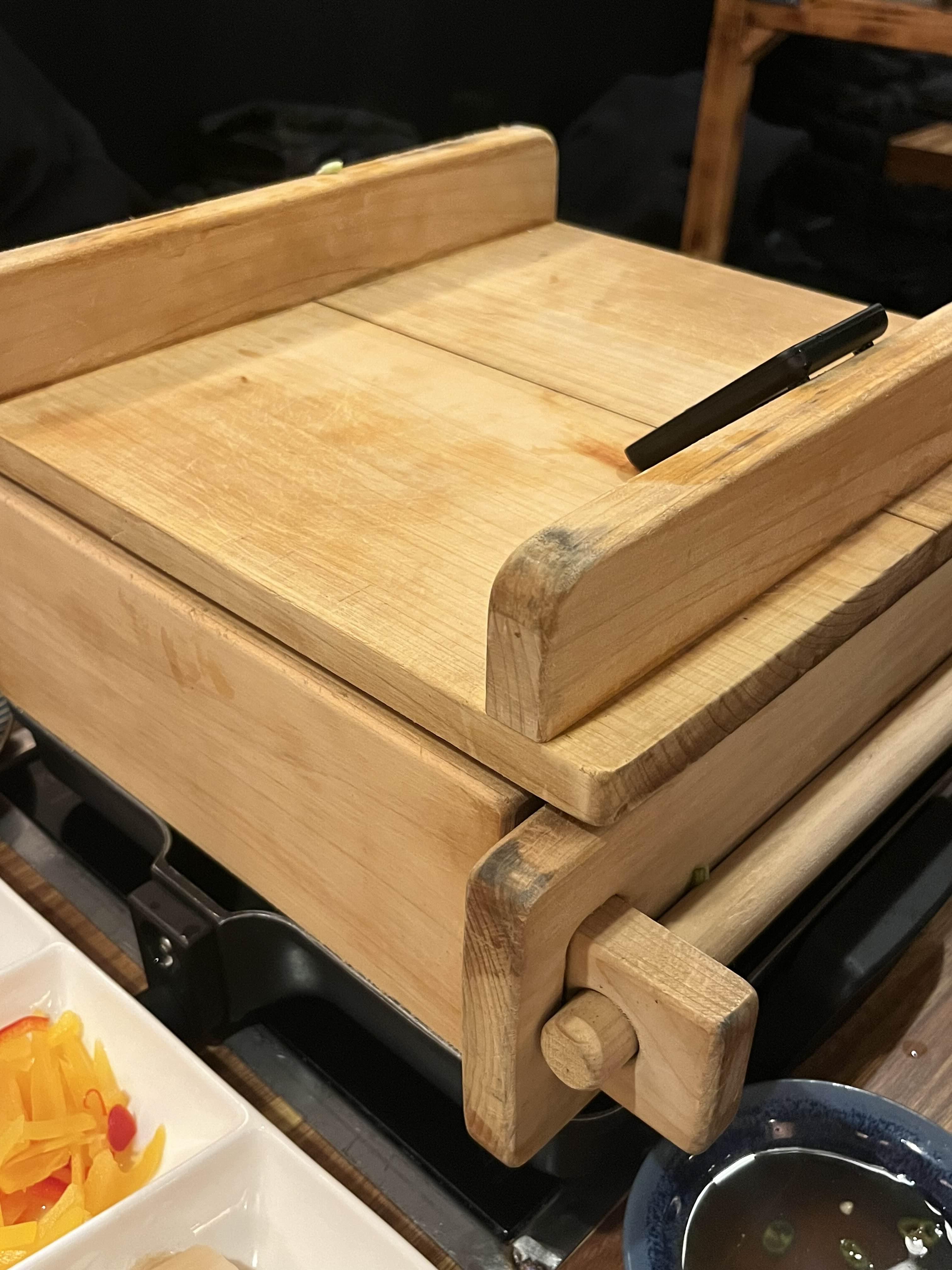 세트 구성에 포함된 1단 편백찜이 등장했다.