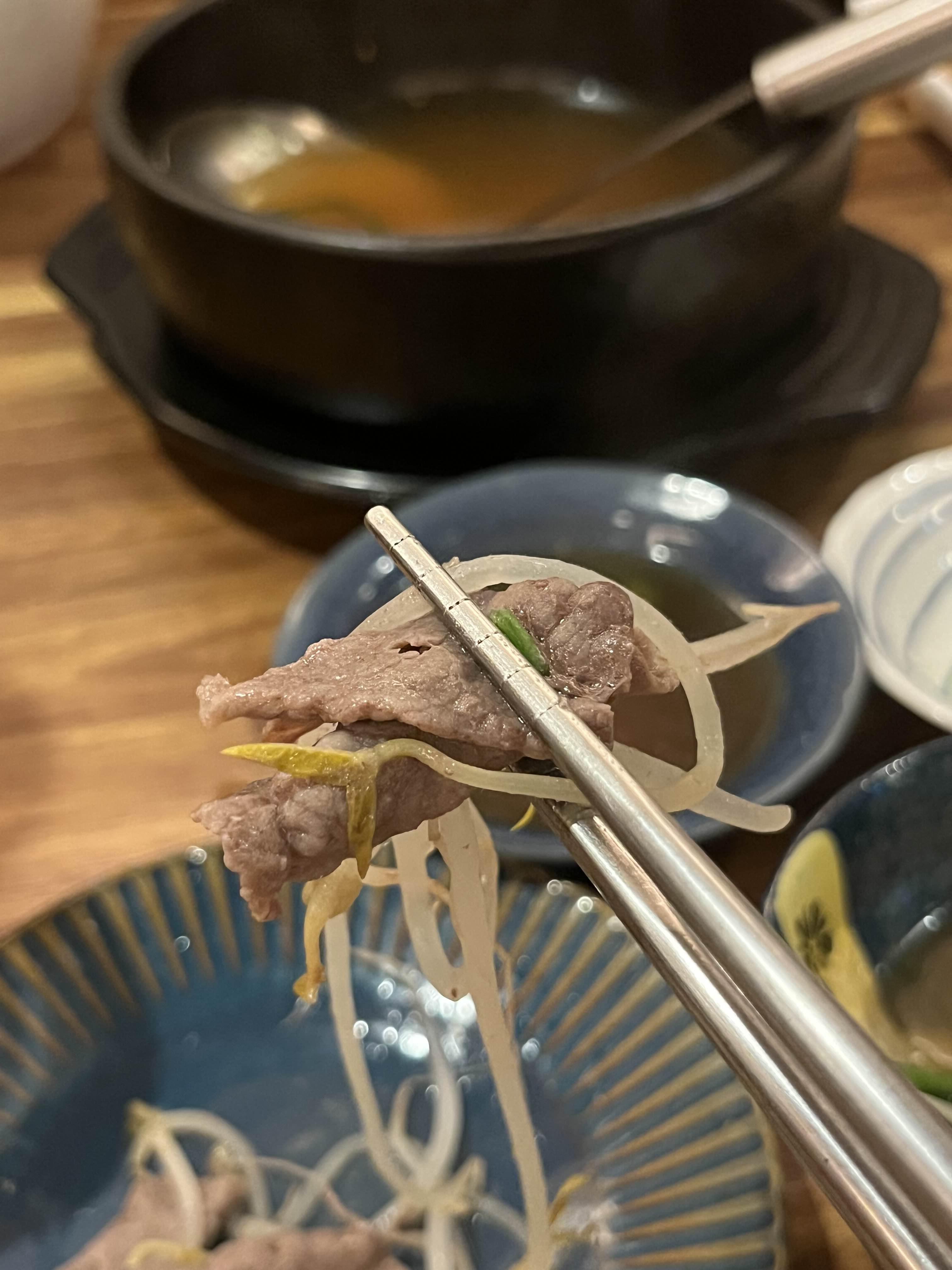 마블링 좋은 소고기와 숙주가 가득했는데