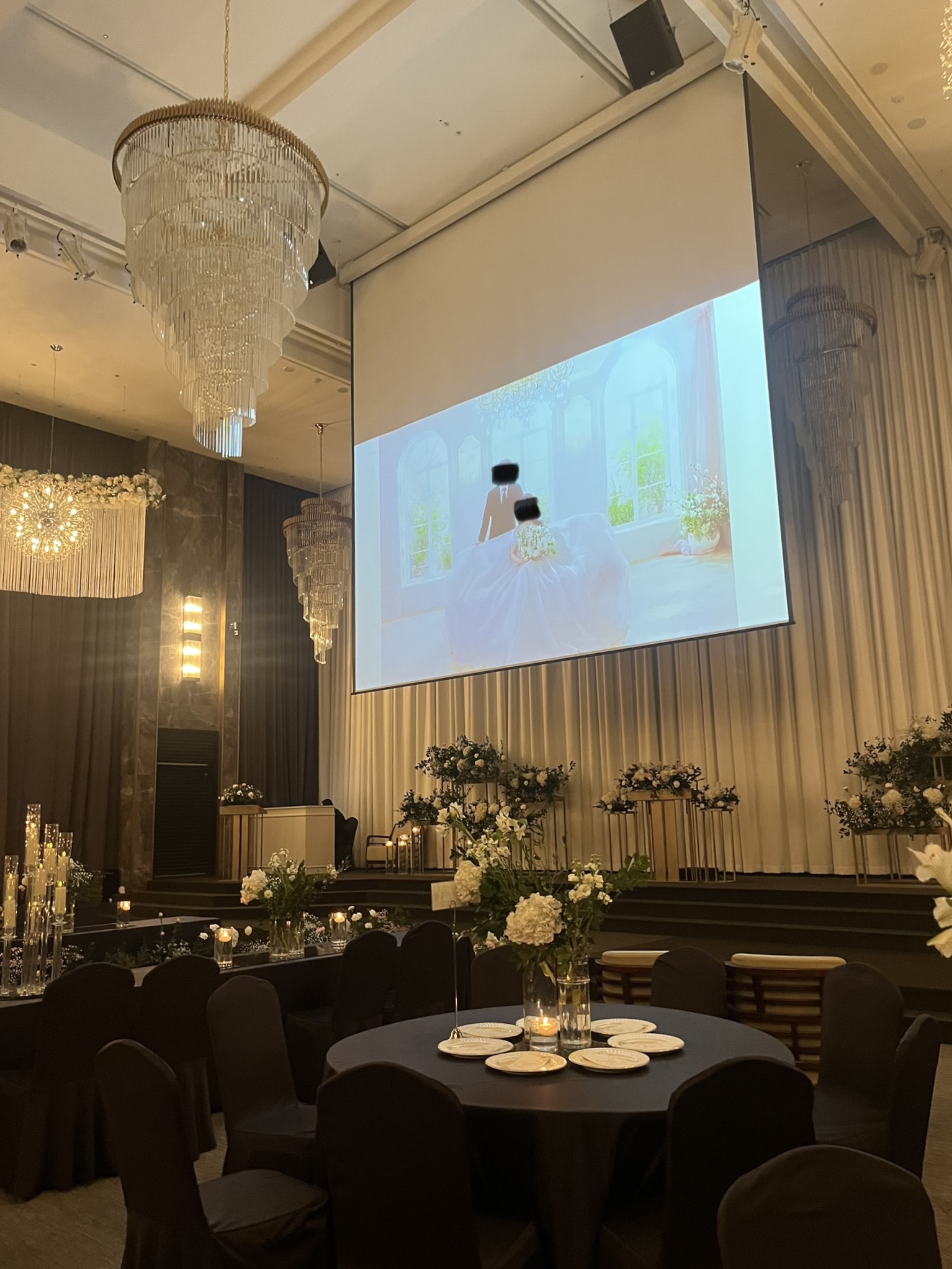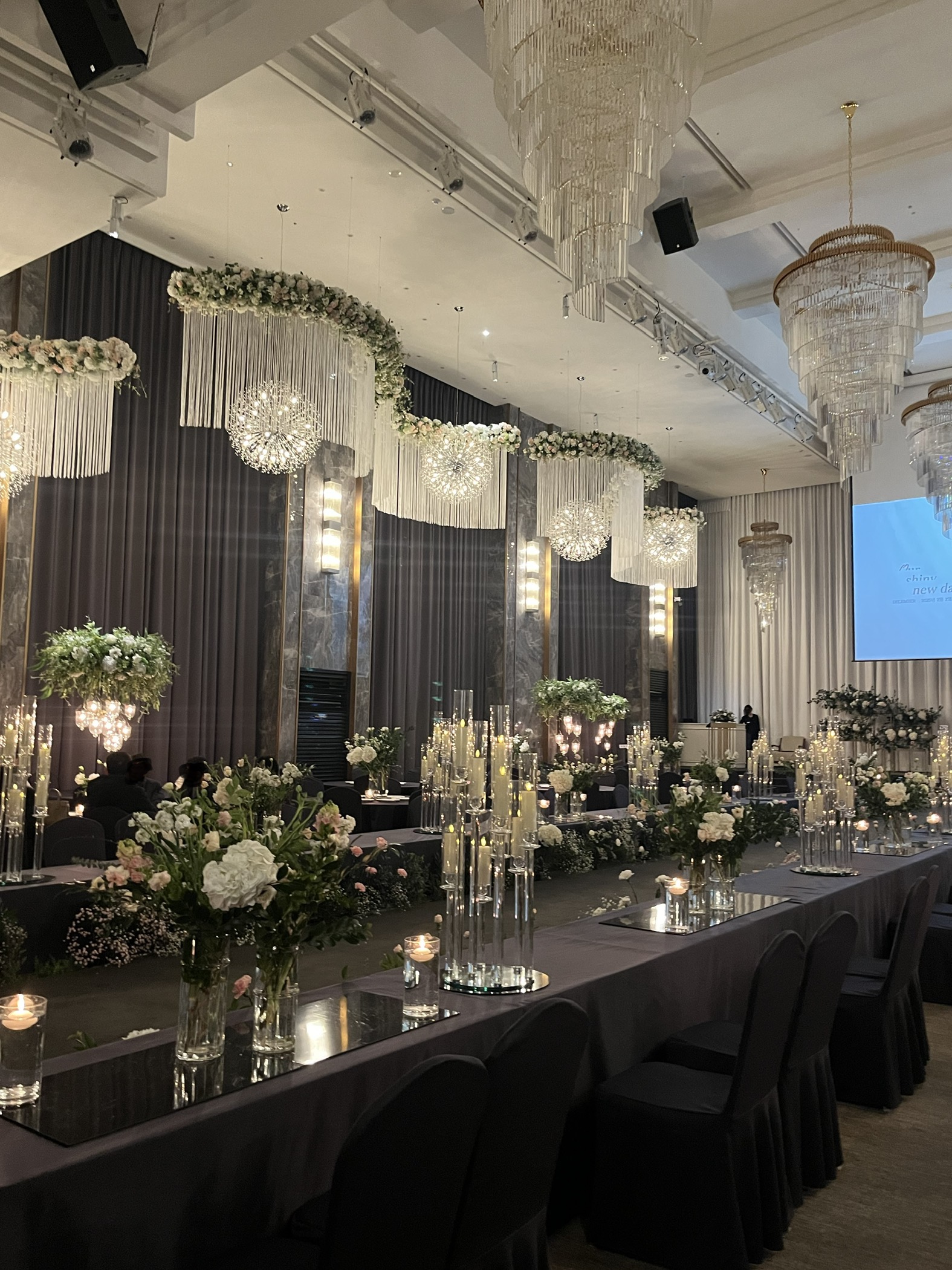 어두운 호텔식 느낌이면서도 샹들리에와 꽃장식이 화려해서 고급진 너낌이쥬?