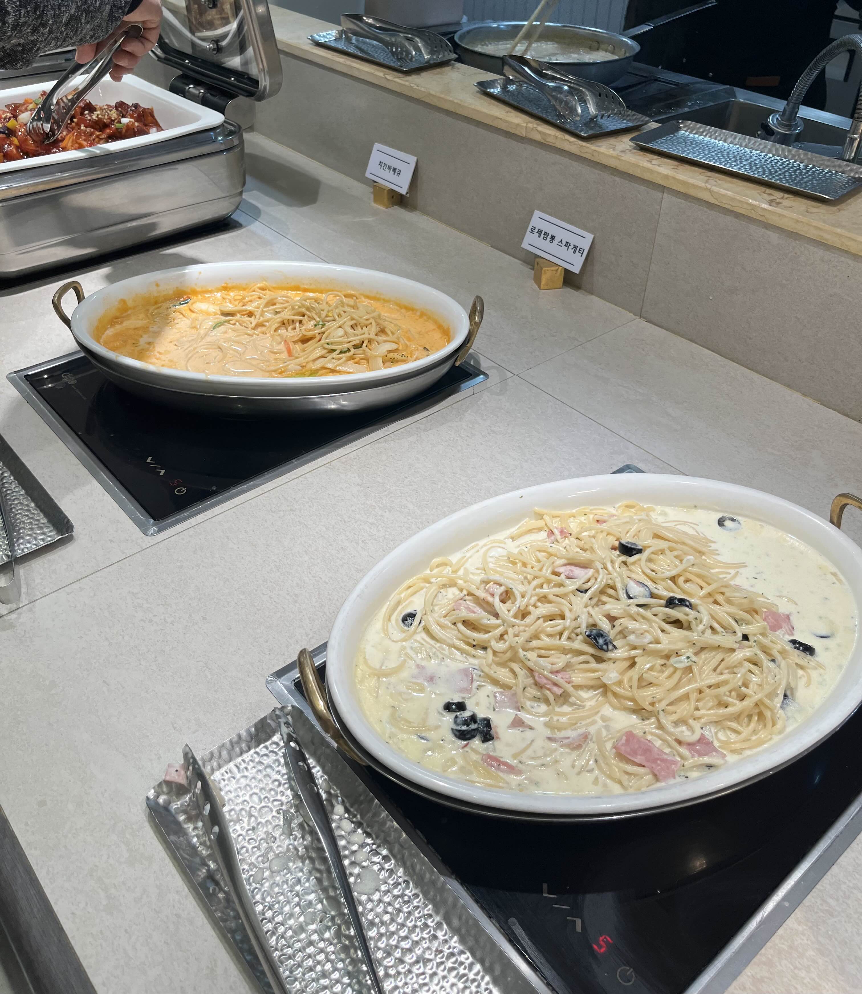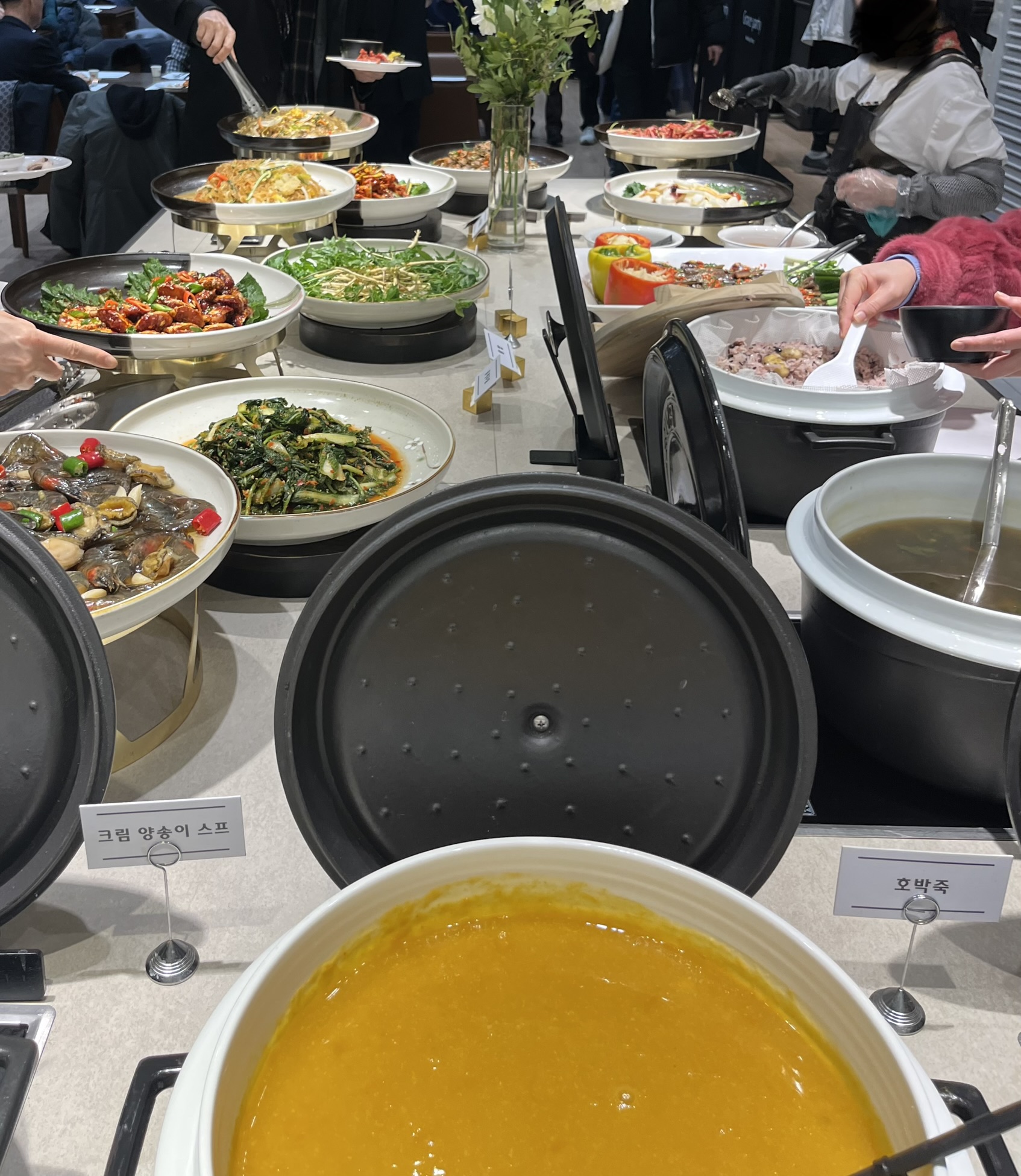 한식존에는 육회, 게장, 잡채, 무말랭이 외 다양한 음식들이 있었고 양송이 크림스프와 호박죽도 있었는데 양송이스프 맛있었어요!