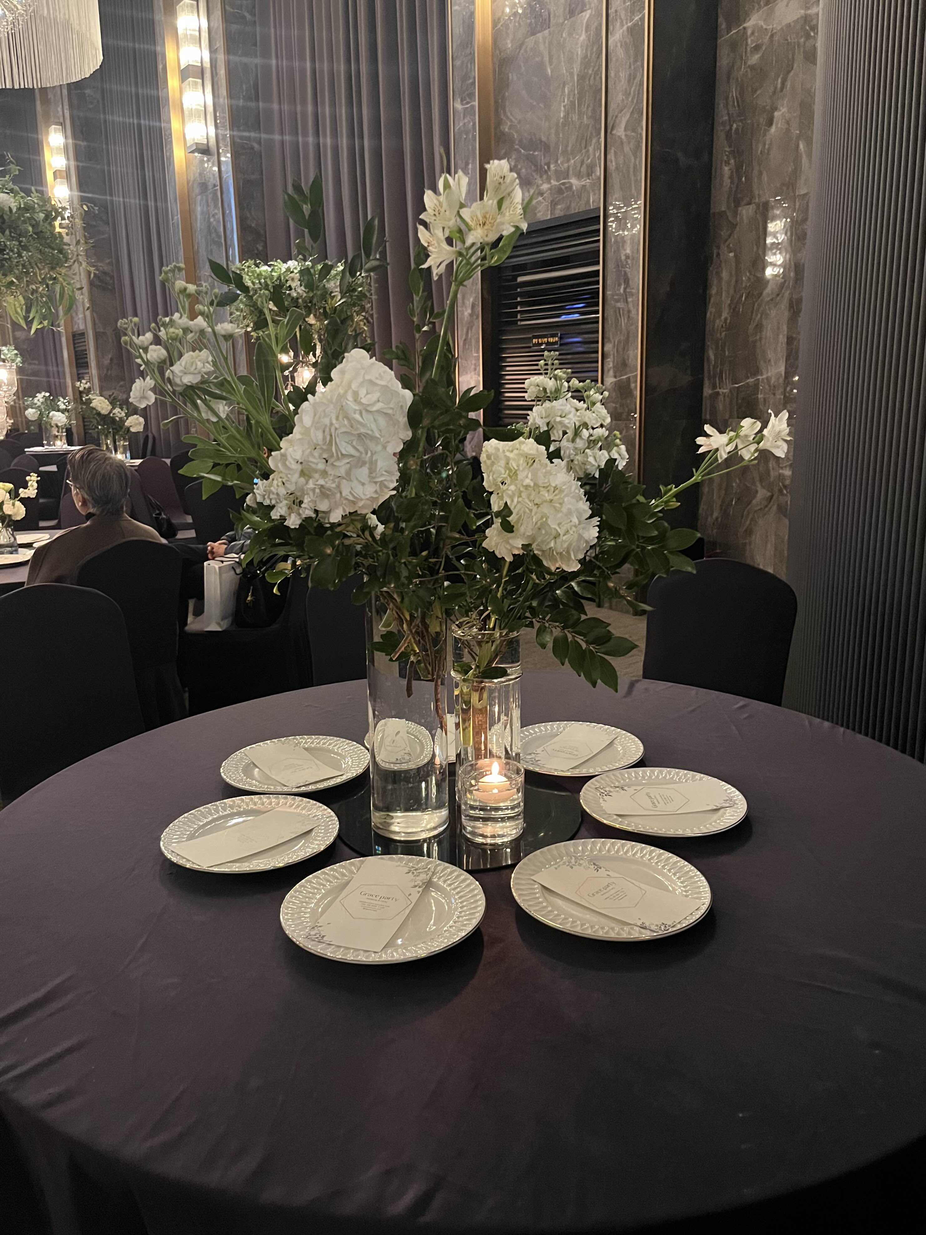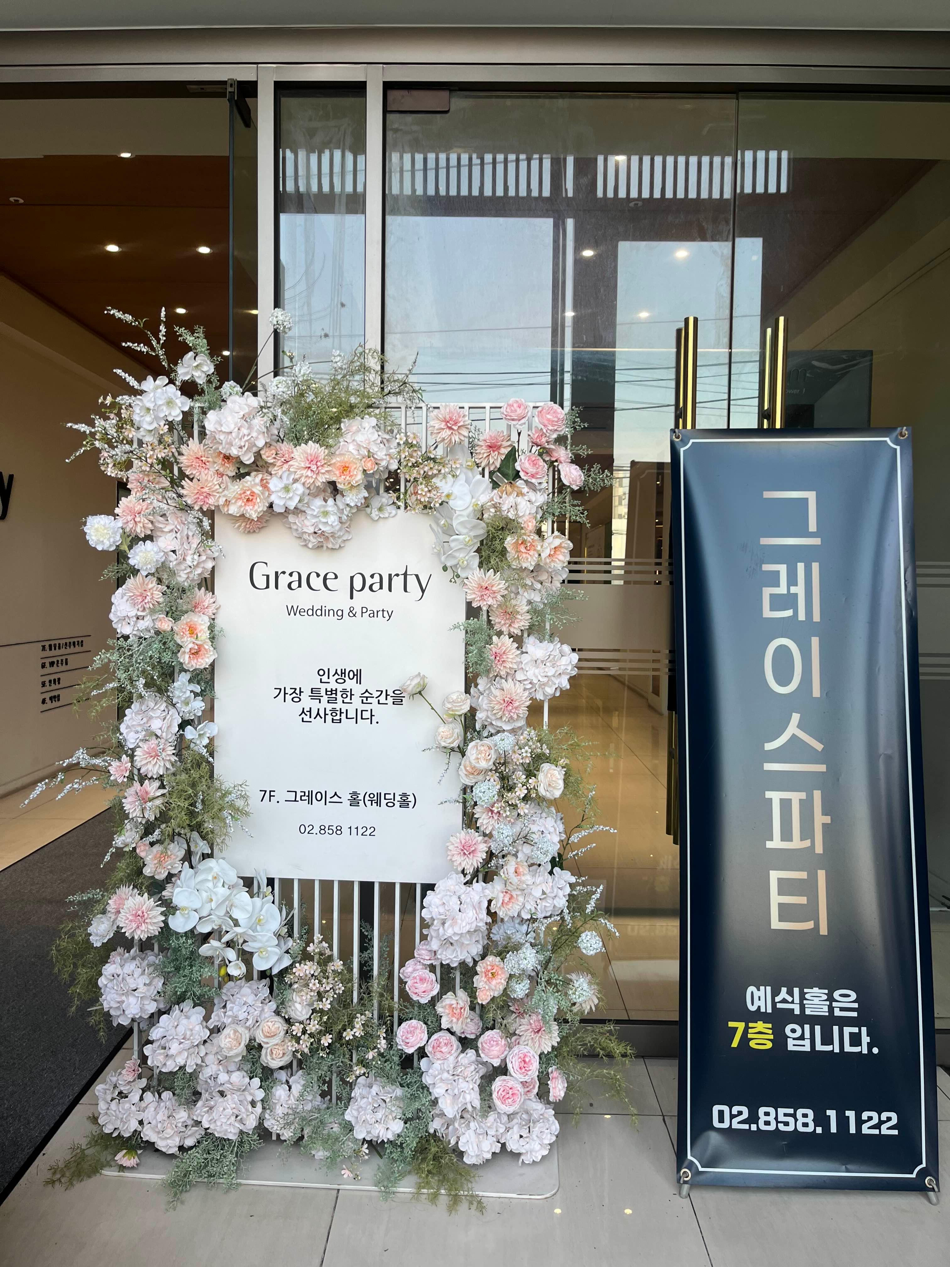 내리자마자 고급스러운 천장 꽃장식과 그레이스파티 네온사인 덕분에 분위기가 좋았는데요!