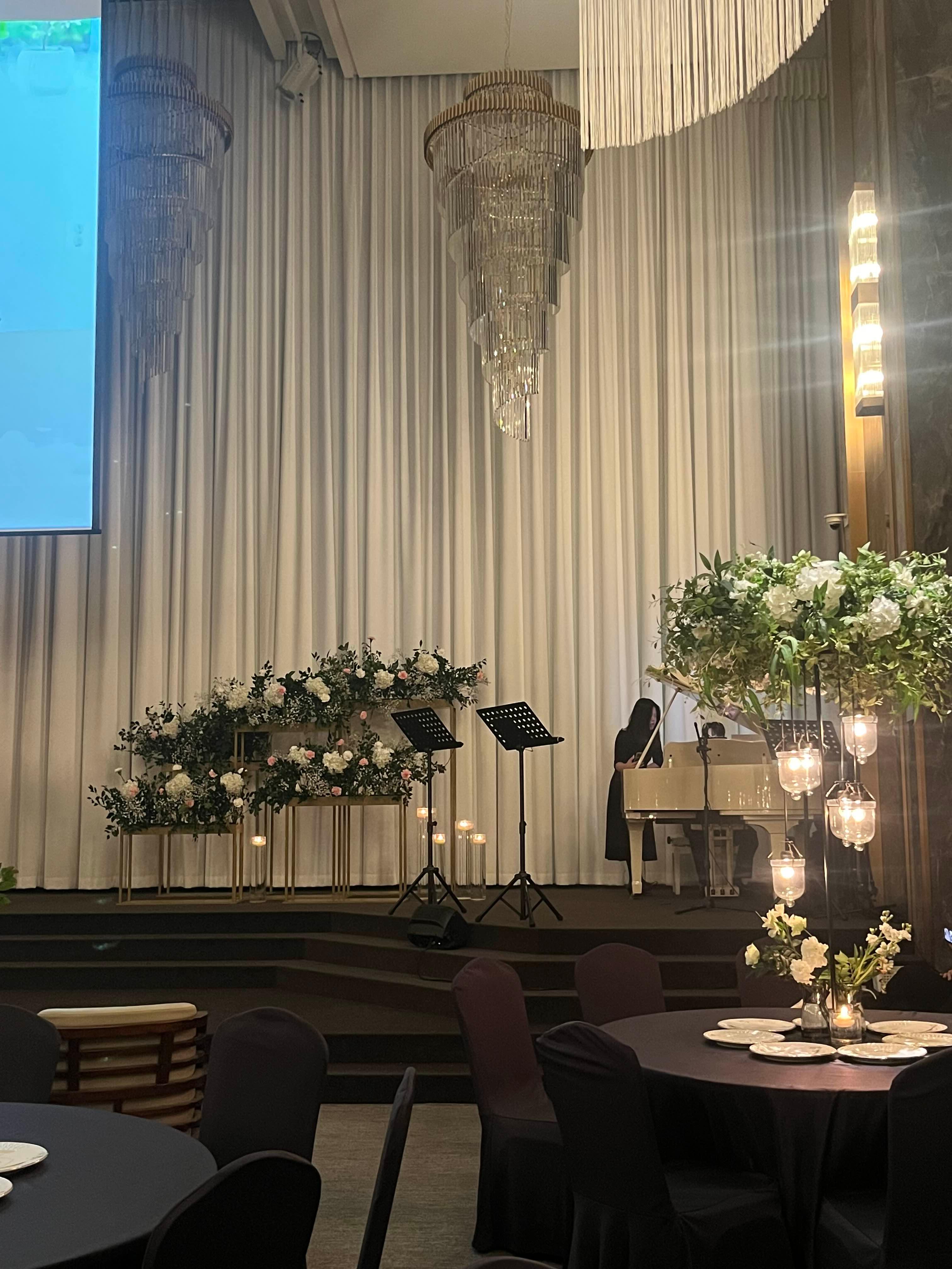 오른쪽에는 그랜드피아노와 함께 축가를 부를 수 있는 공간이 마련되어 있었어요!