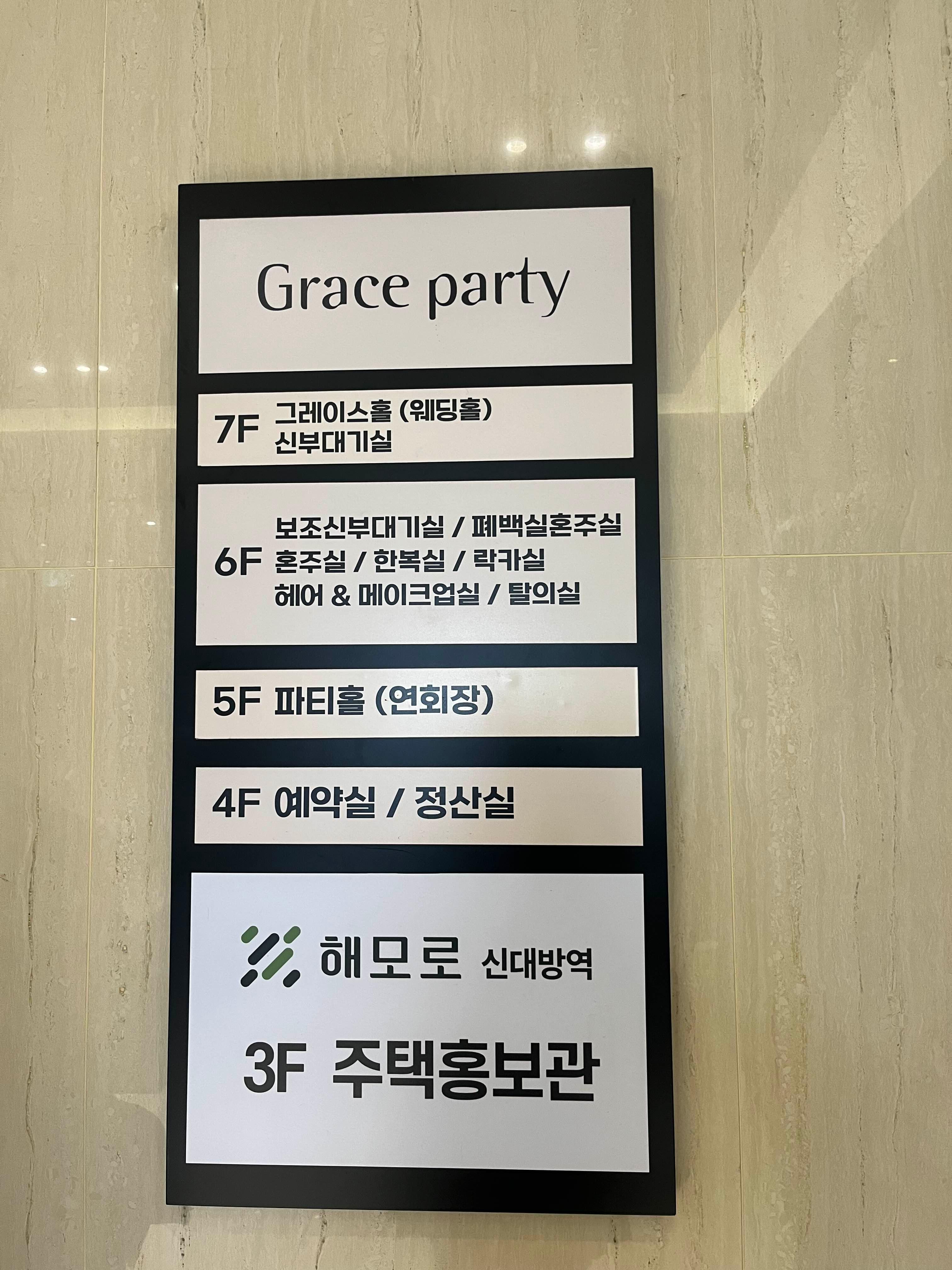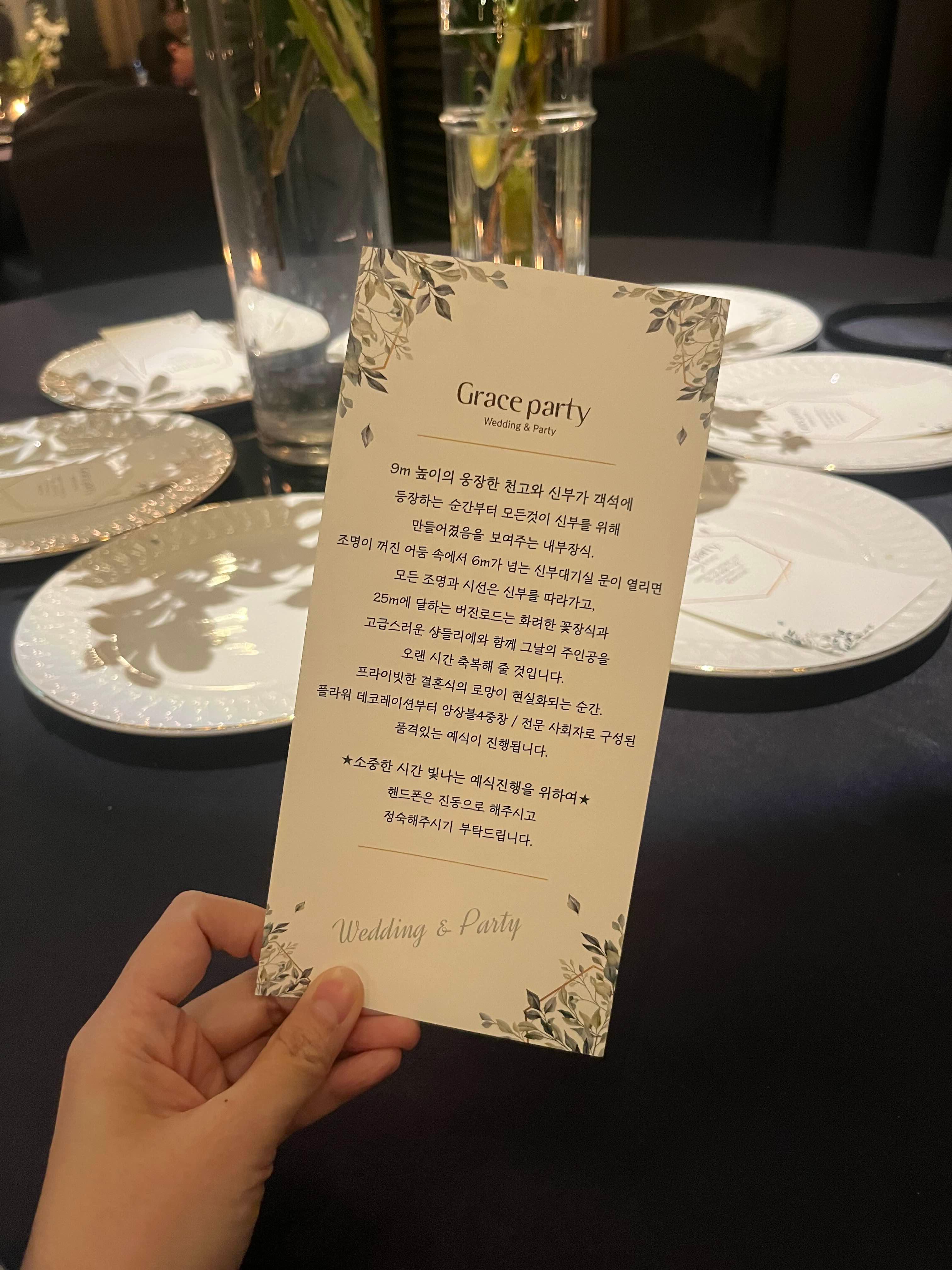 자리마다 놓여있는 안내문이 있길래 읽어보니 그레이스파티 웨딩홀 소개였네여 ㅎㅎㅎ
