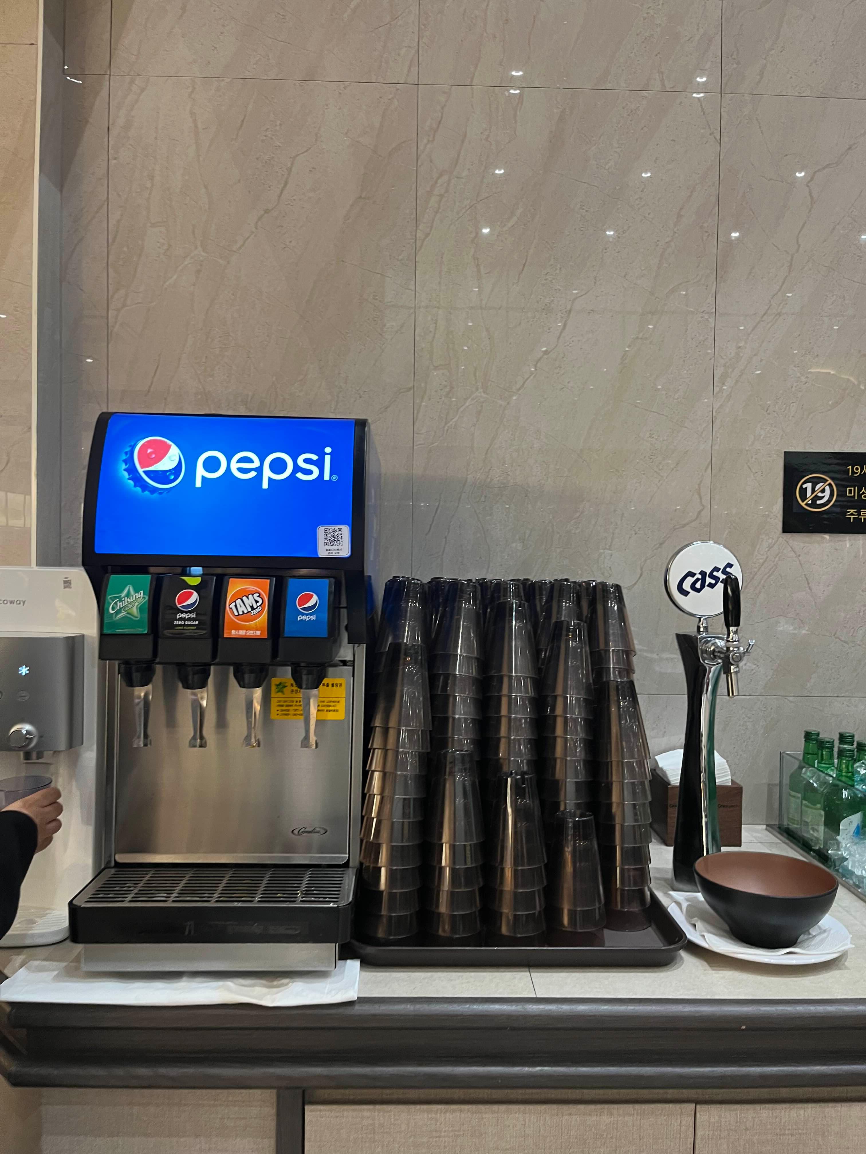탄산음료는 총 4가지 준비되어 있었는데 펩시랑 탐스 제로도 있는 센스,,,,