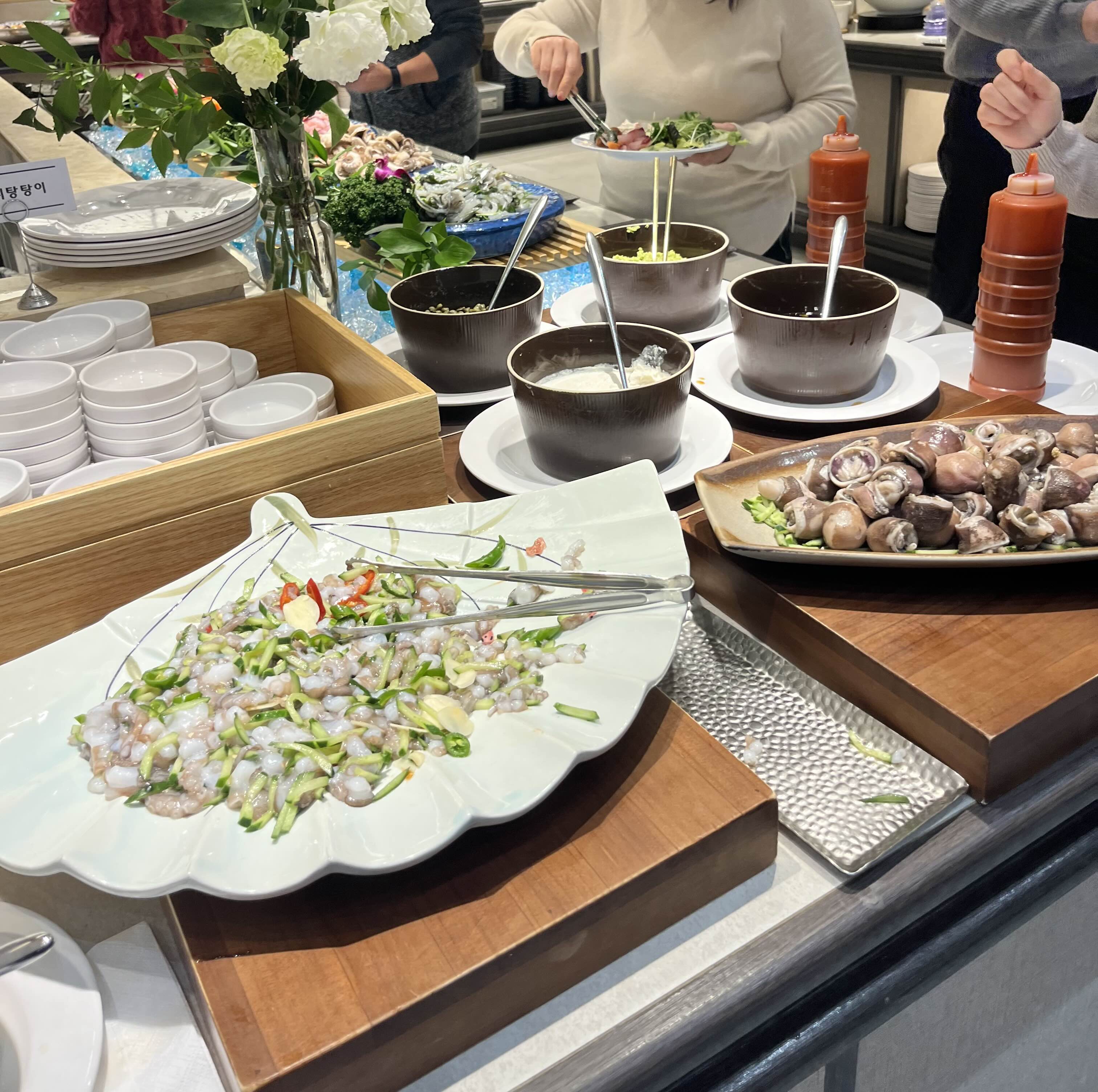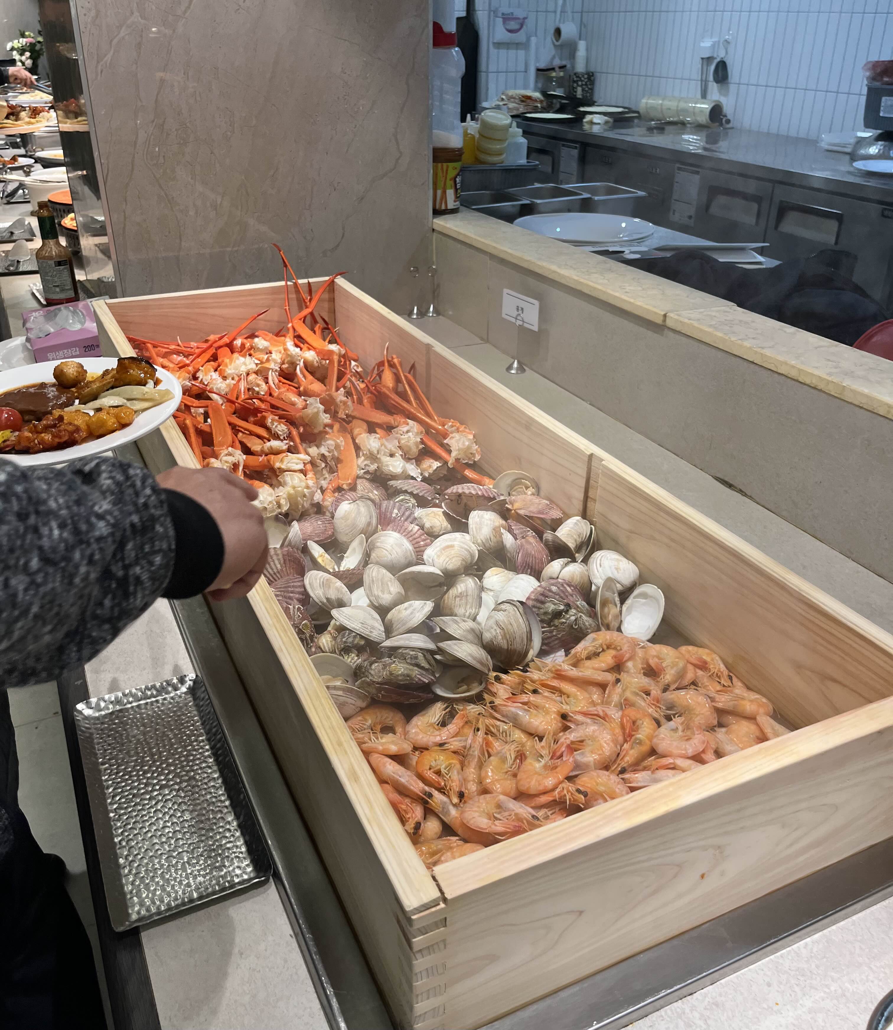 새우, 조개, 가리비, 홍게 등이 찜으로 준비되어 있었는데 제 입맛에는 요 찜류는 평범했습니다.