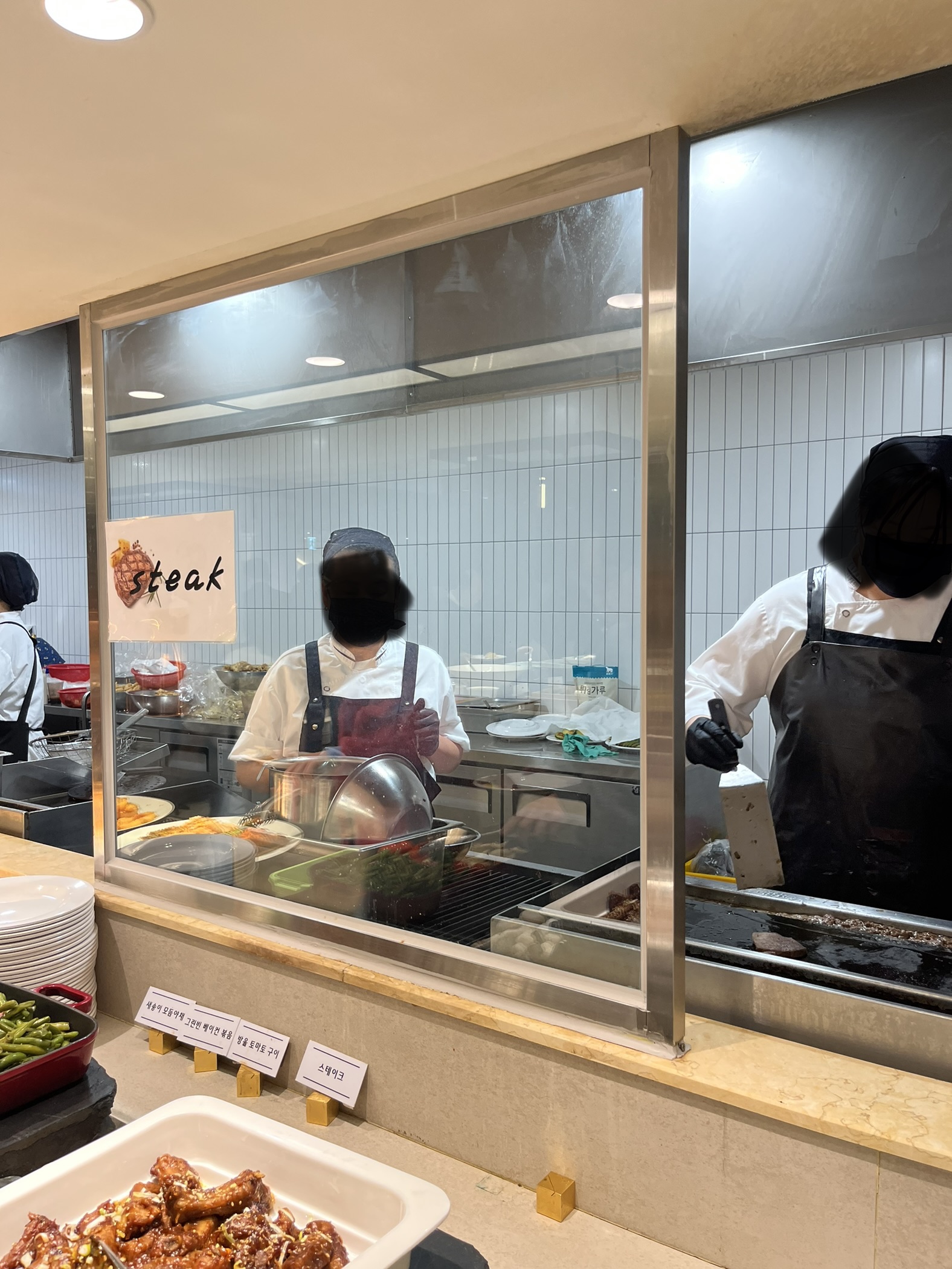 좌석 반대편으로는 조리 공간과 음식을 담을 수 있는 부페공간이 마련되어 있었습니다.