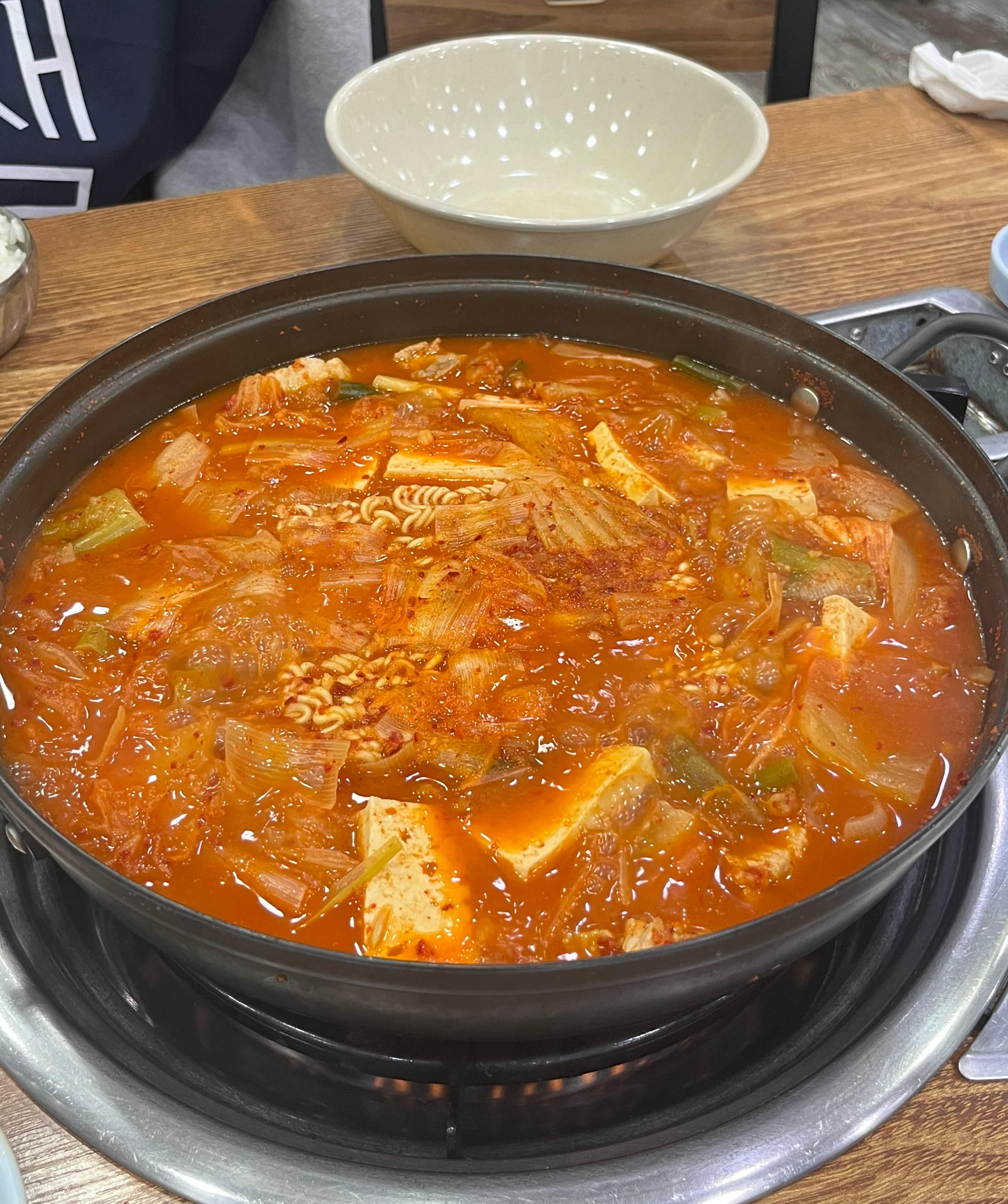 드디어 김치찌개가 나왔습니다. 사실 한국인들은 하도 김치찌개를 많이 먹다보니 떼깔만 봐도 대충 각이 나오잖아요? 이거 보자마자 깔끔하니 맛있을것 같은 느낌이 들었습니다.