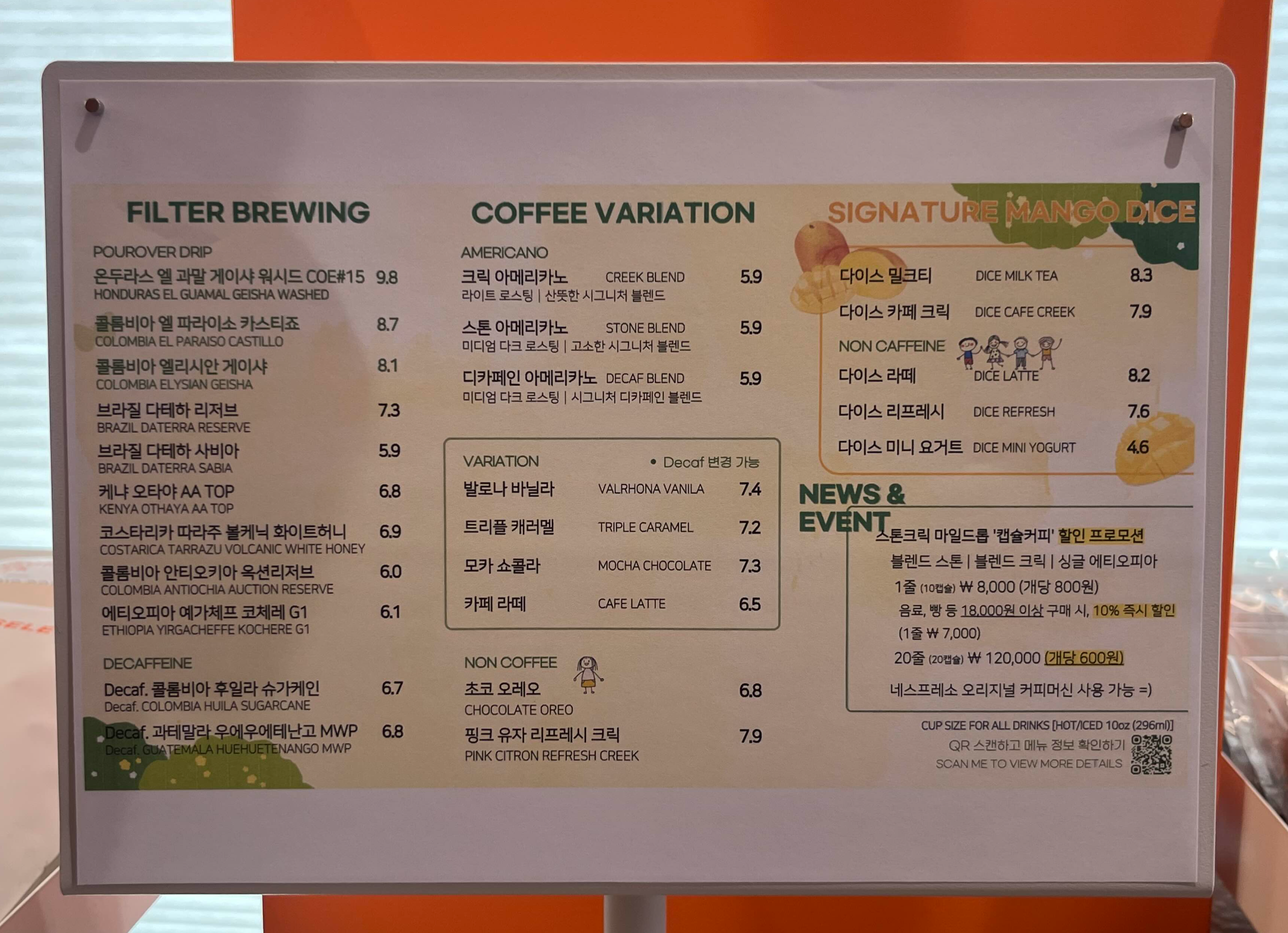 드립 커피는 5,900원 ~ 9,800원 사이로 총 11개의 원두 선택이 가능했고 가격대도 나쁘지 않다는 생각이 들었습니다.