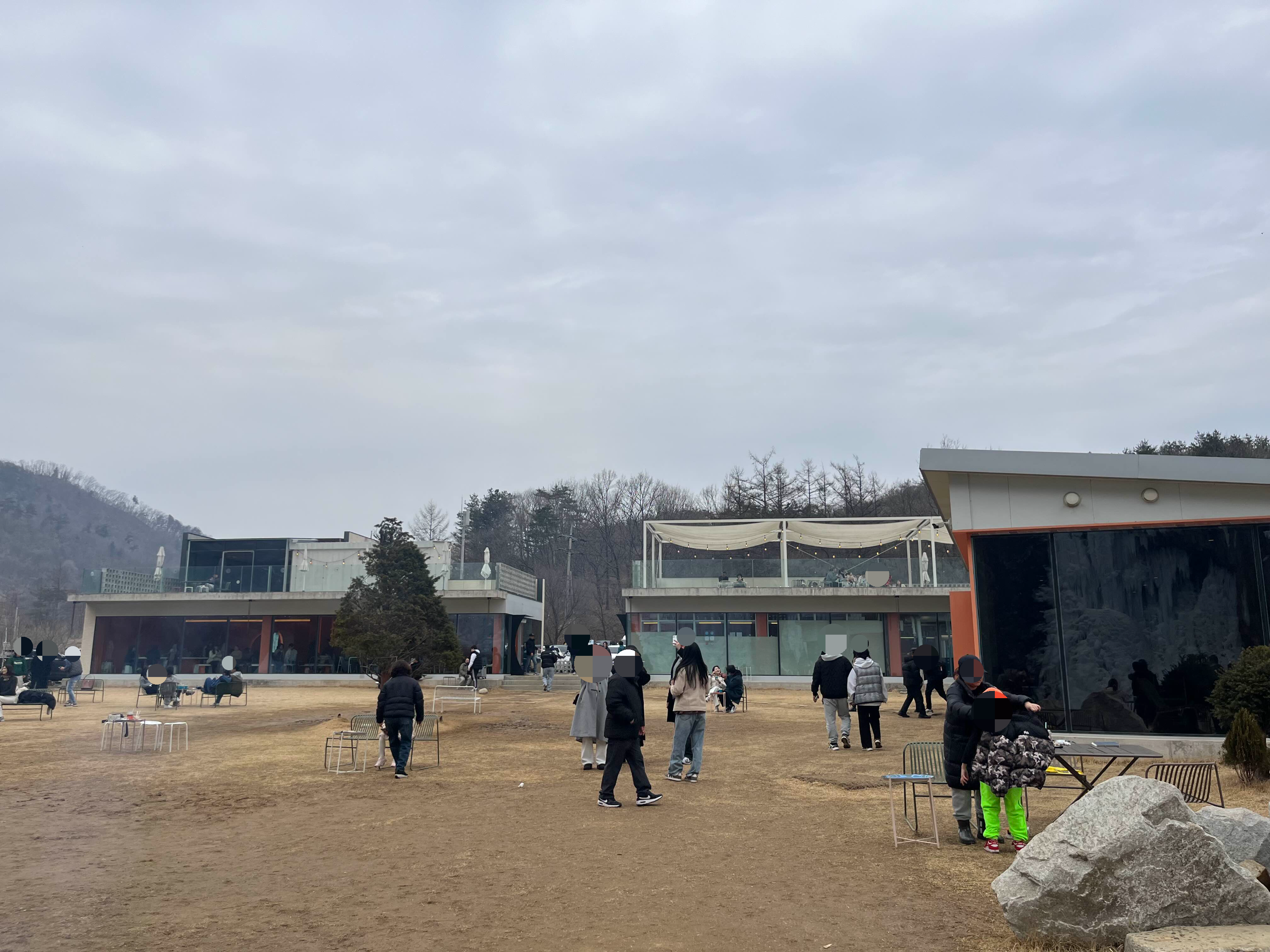 빙벽뷰 뒷편으로는 요렇게 카페 건물 3채가 보입니다. 야외에도 물론 자리가 띄엄띄엄 있는데 날씨가 풀리고 나니 야외석이 인기가 많아 이미 자리가 없더라구요.