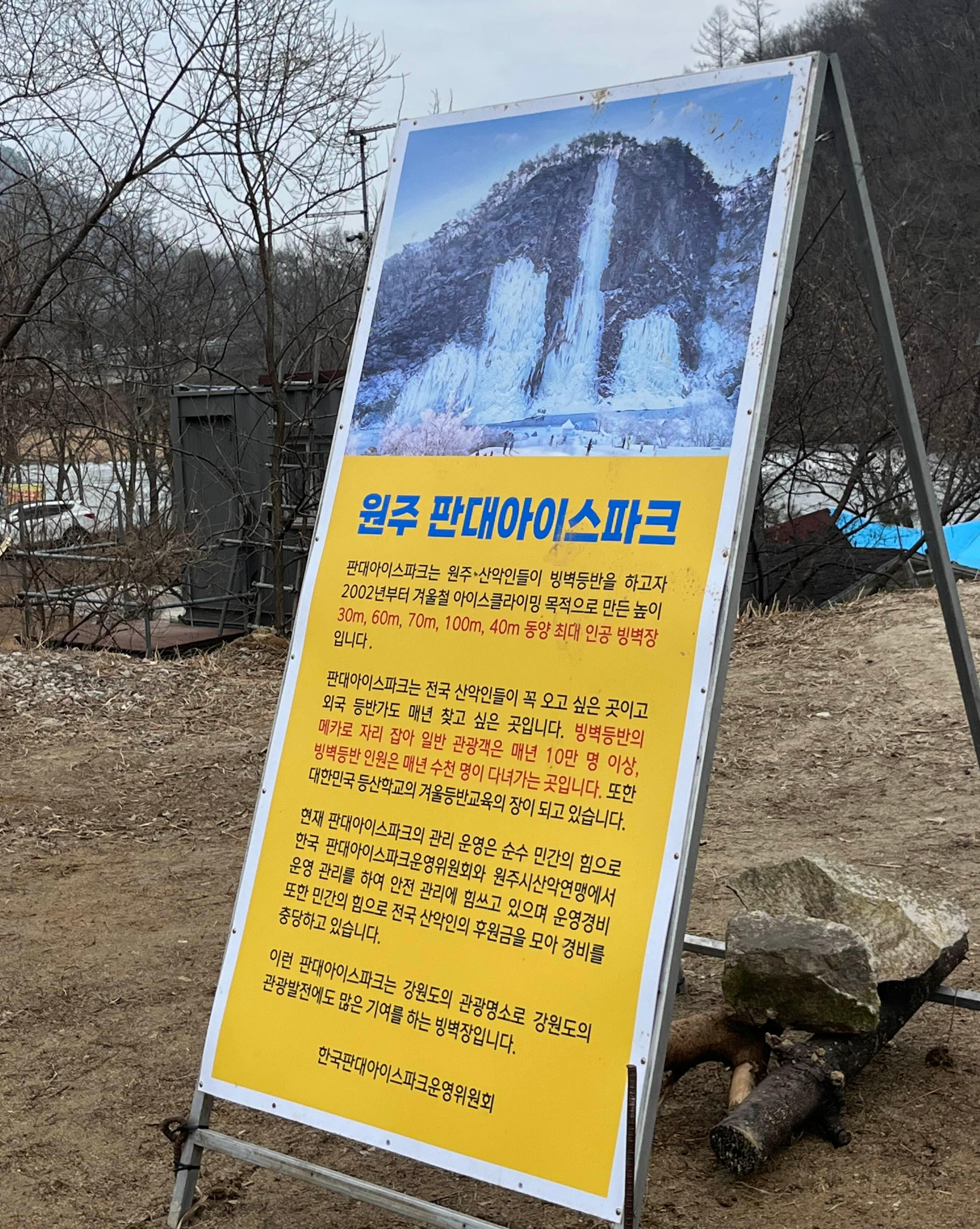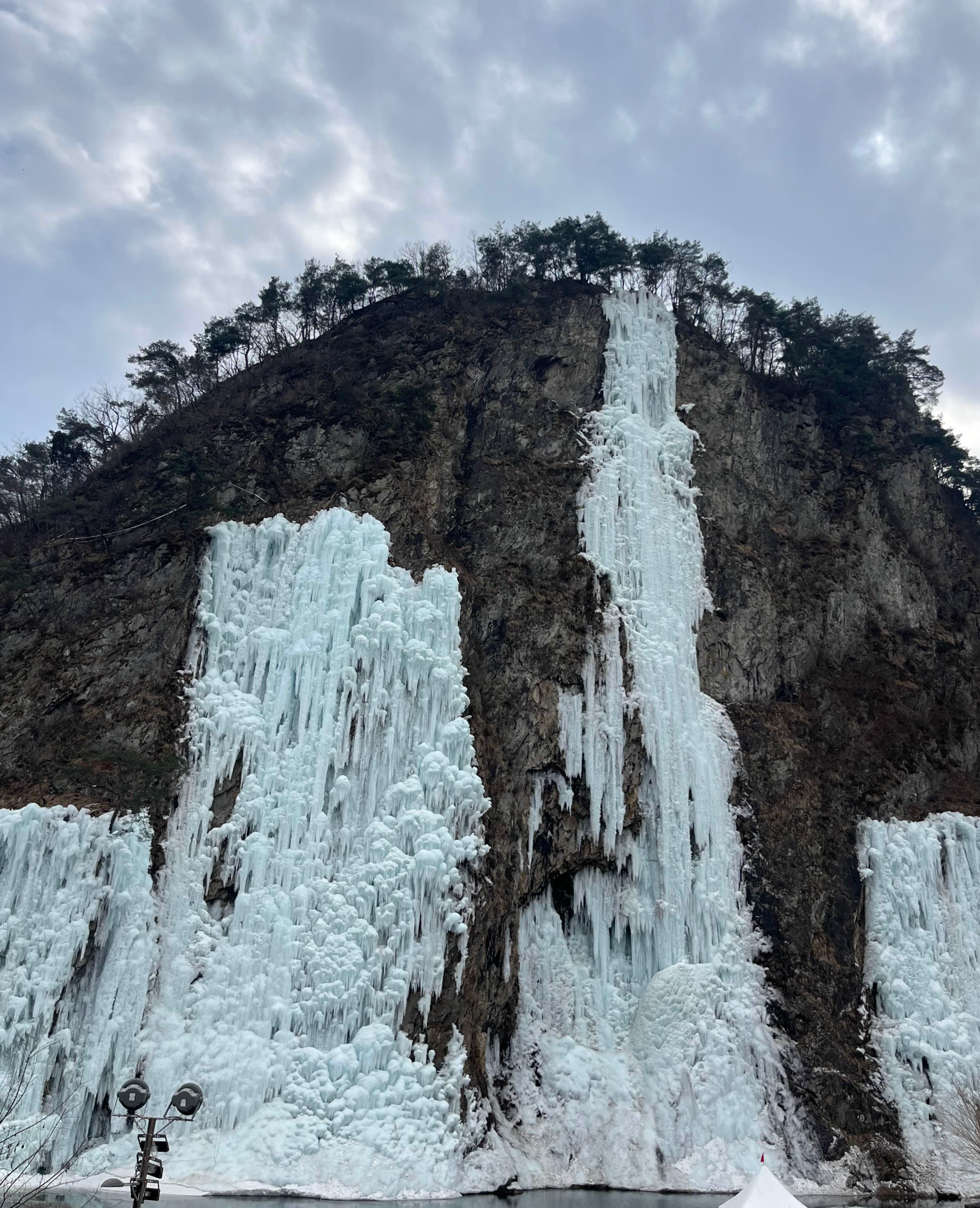 참고로 이 병벽은 자연적으로 만들어 진건 아니고 인공빙벽으로 '판대 아이스파크' 라고 불리웁니다.