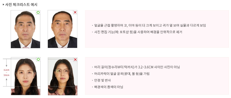 - 여권 사진규정이 엄격하므로 규정 준수 필요