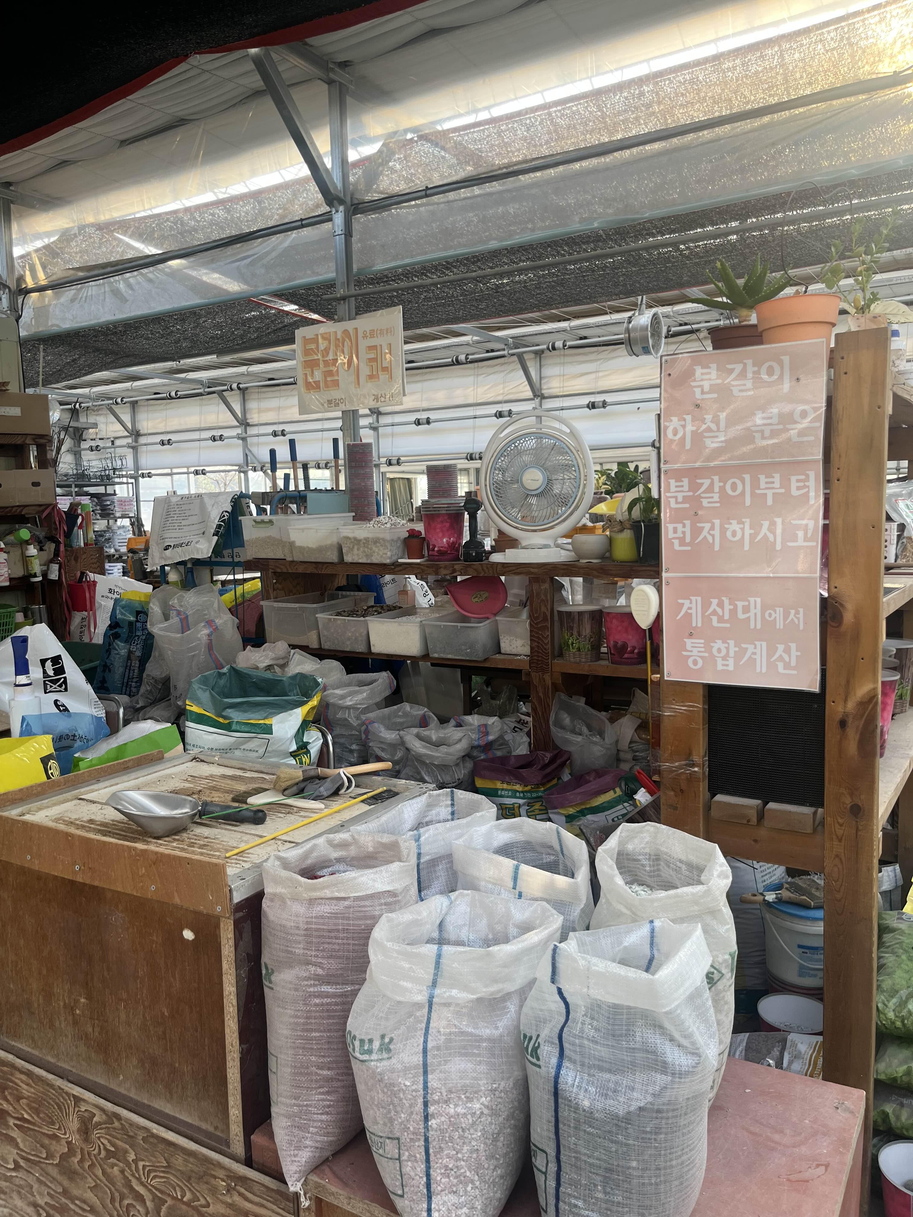 이쪽이 분갈이 코너인데 계산전에 먼저 분갈이를 하고